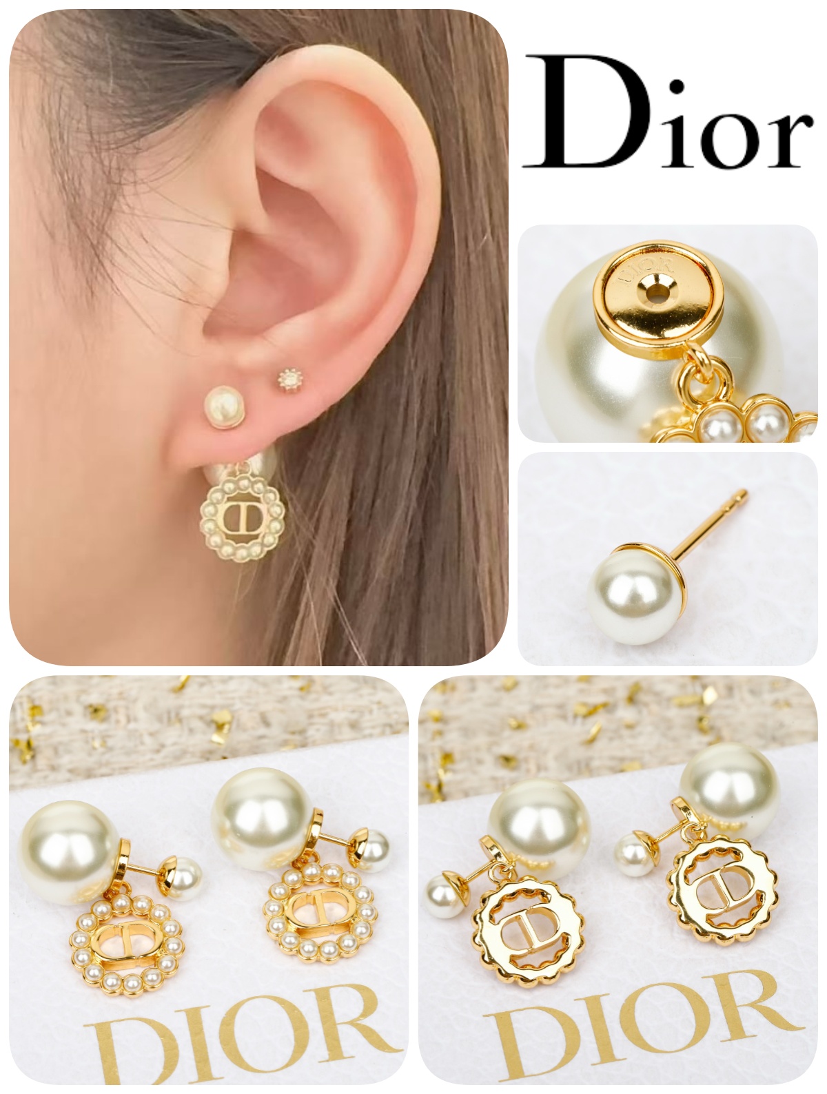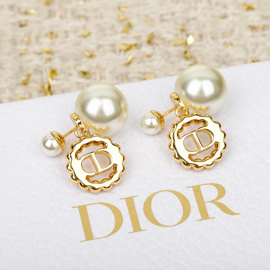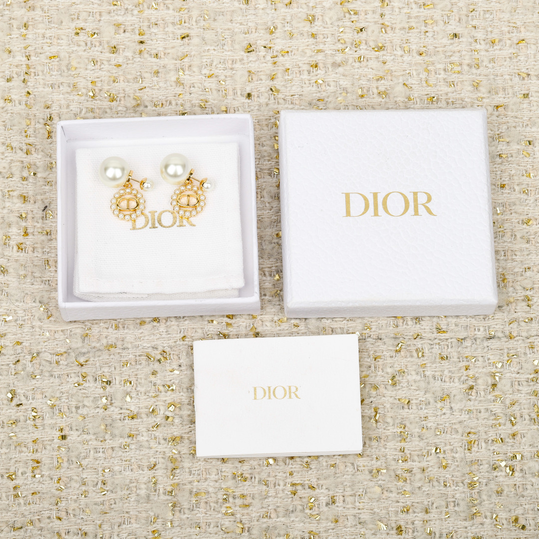 Dior 大小珠 CD 珍珠耳環 連禮盒