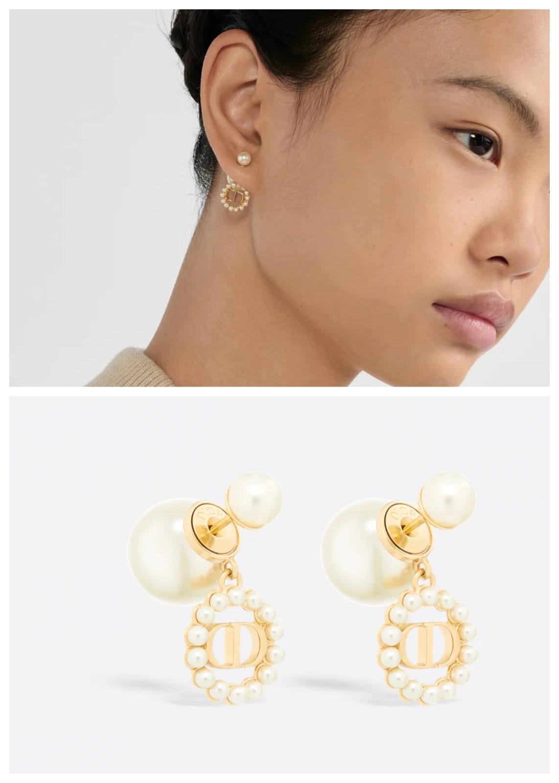 美詮釋了Dior精緻優雅的品牌精髓。飾有CD字樣,並以白色樹脂珍珠優雅環繞。