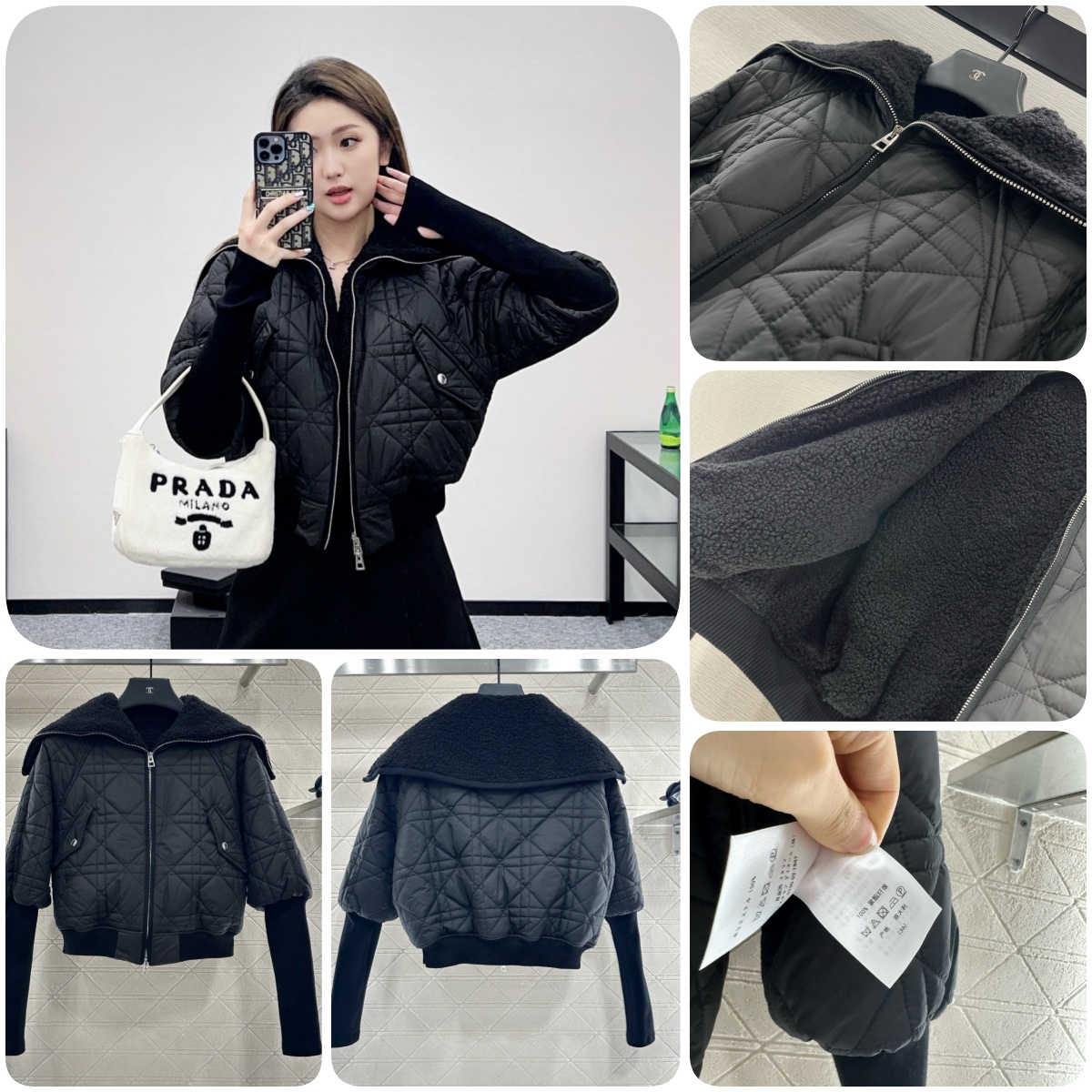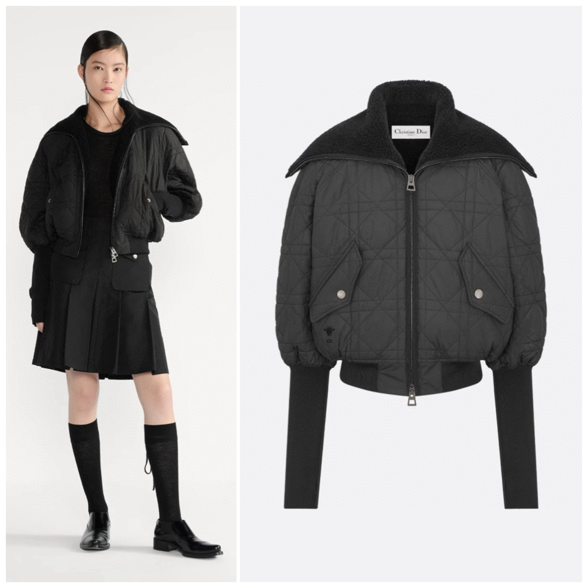 這款外套以絎縫效果的大型藤格紋圖案,重新演繹品牌經典的主題圖案。以超輕盈的黑色科技塔夫綢製成,採用悠閒、短版剪裁,配以寬身拉鏈衣領和側面翻蓋口袋,令造型更顯出眾。此外套飾有稜紋下擺和衣袖,可配搭本季的休閒造型
