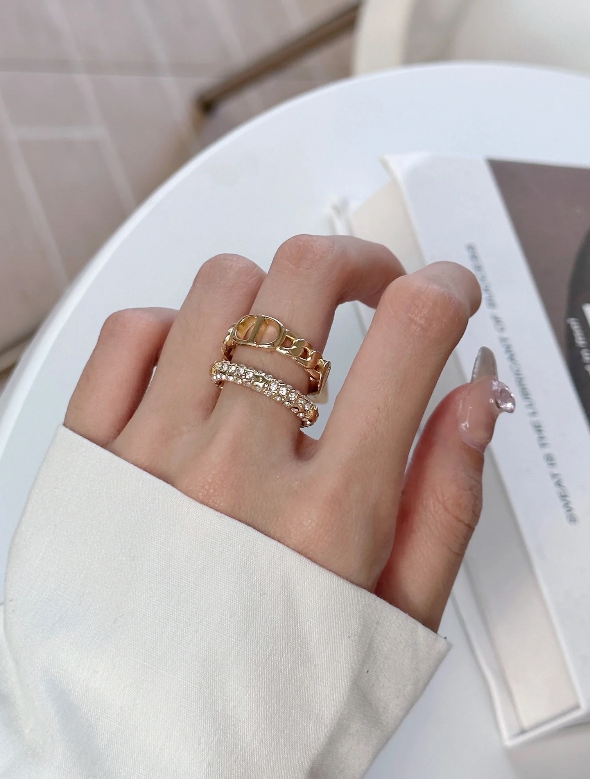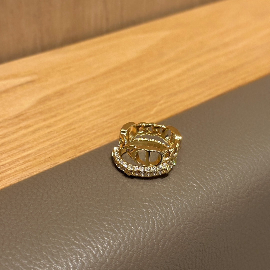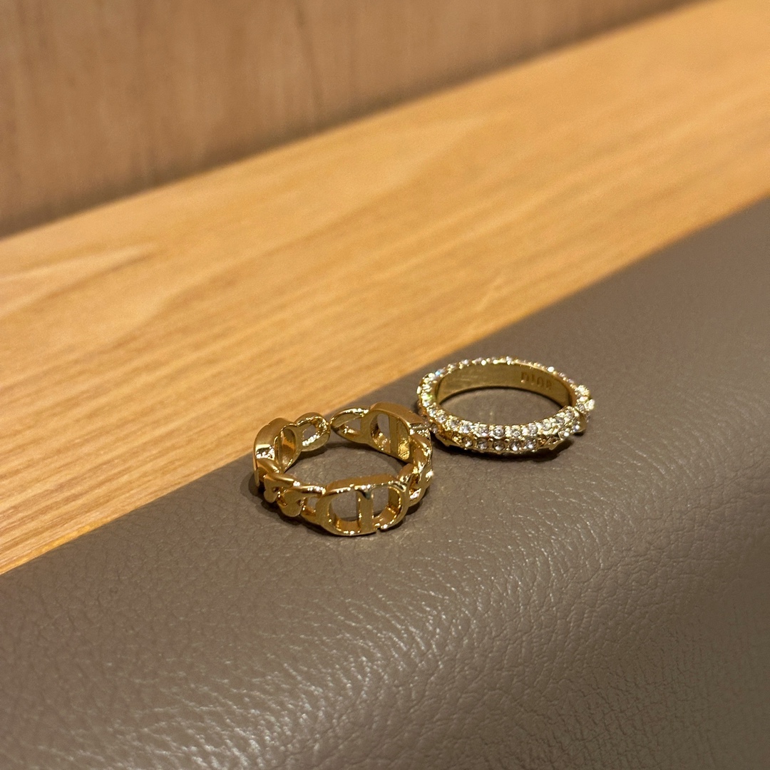 包含一枚飾有 CD 標誌的金色戒指,以及一枚鑲嵌白色水晶的星形密鑲戒指。