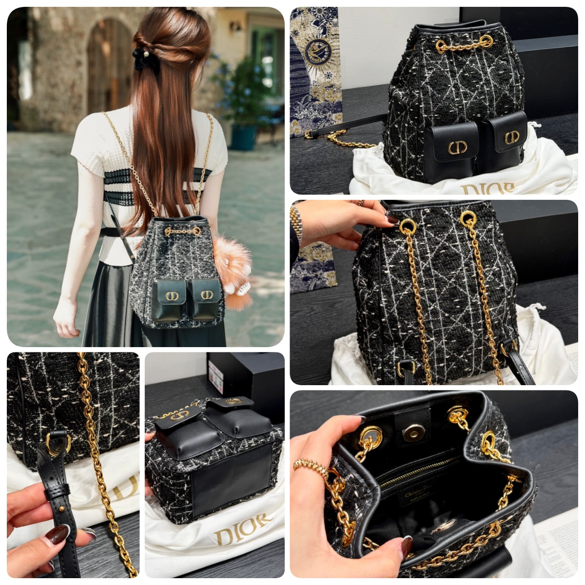 Dior Caro 粗花呢水桶鏈條背囊 禮盒包裝