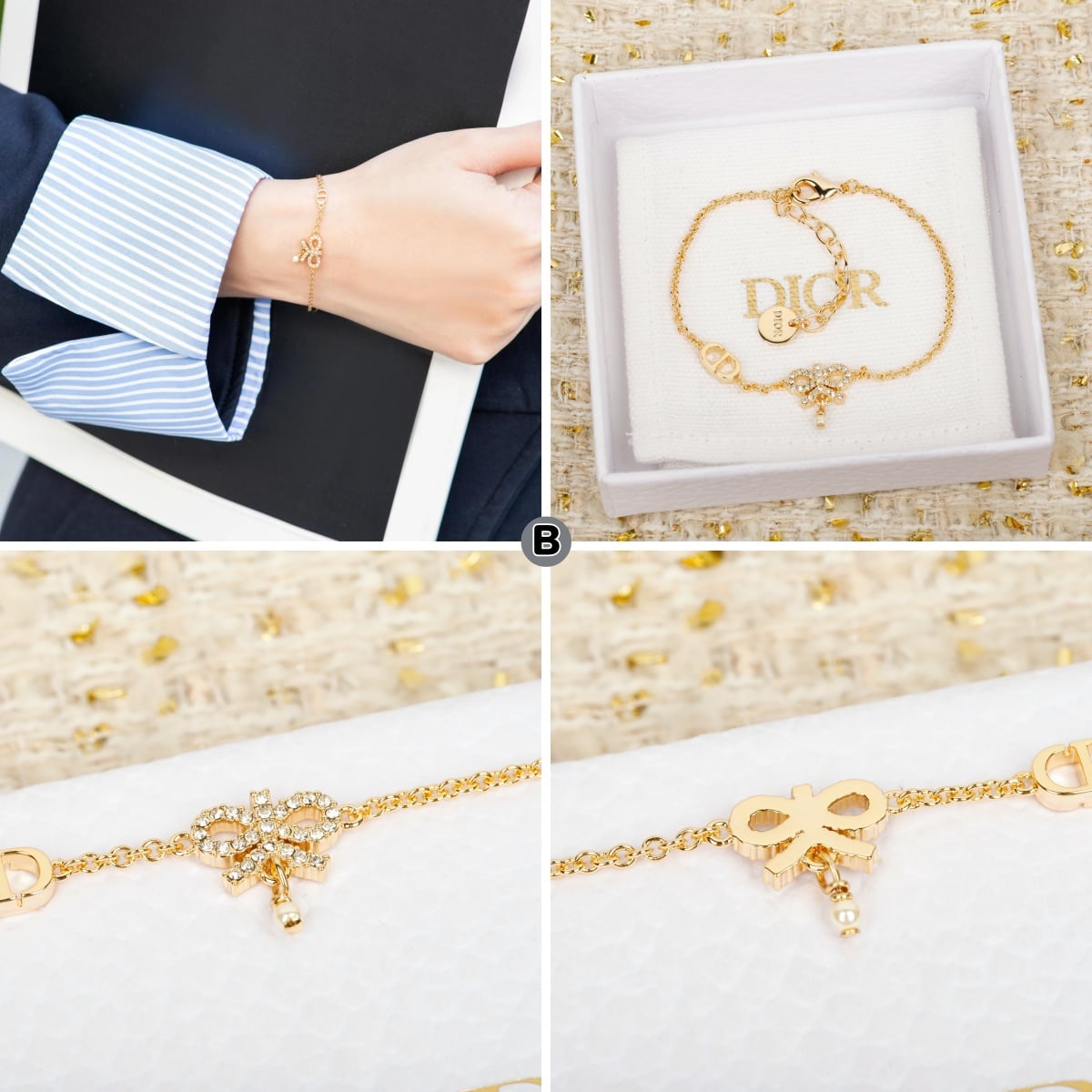 Dior Earrings Gold 滿鑽蝴蝶結系列飾品合集 - 禮盒裝