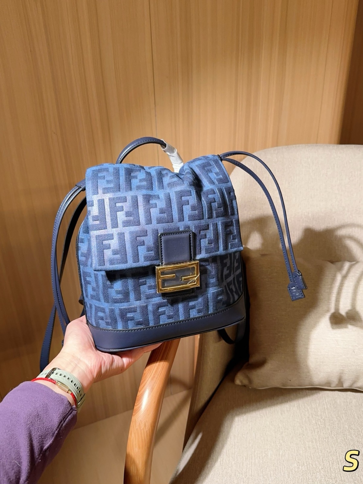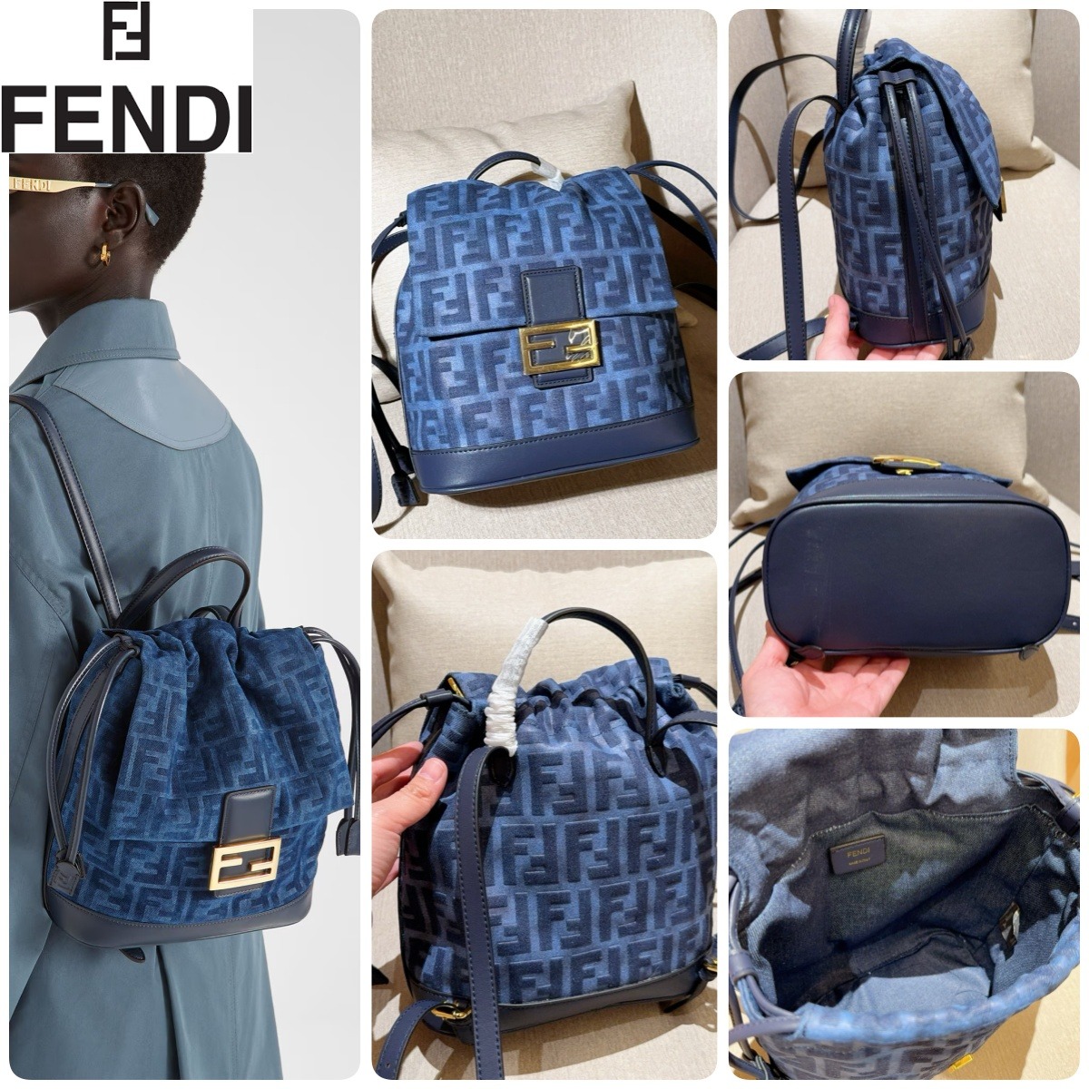 FENDI 深藍色FF提花背囊 - 禮盒裝