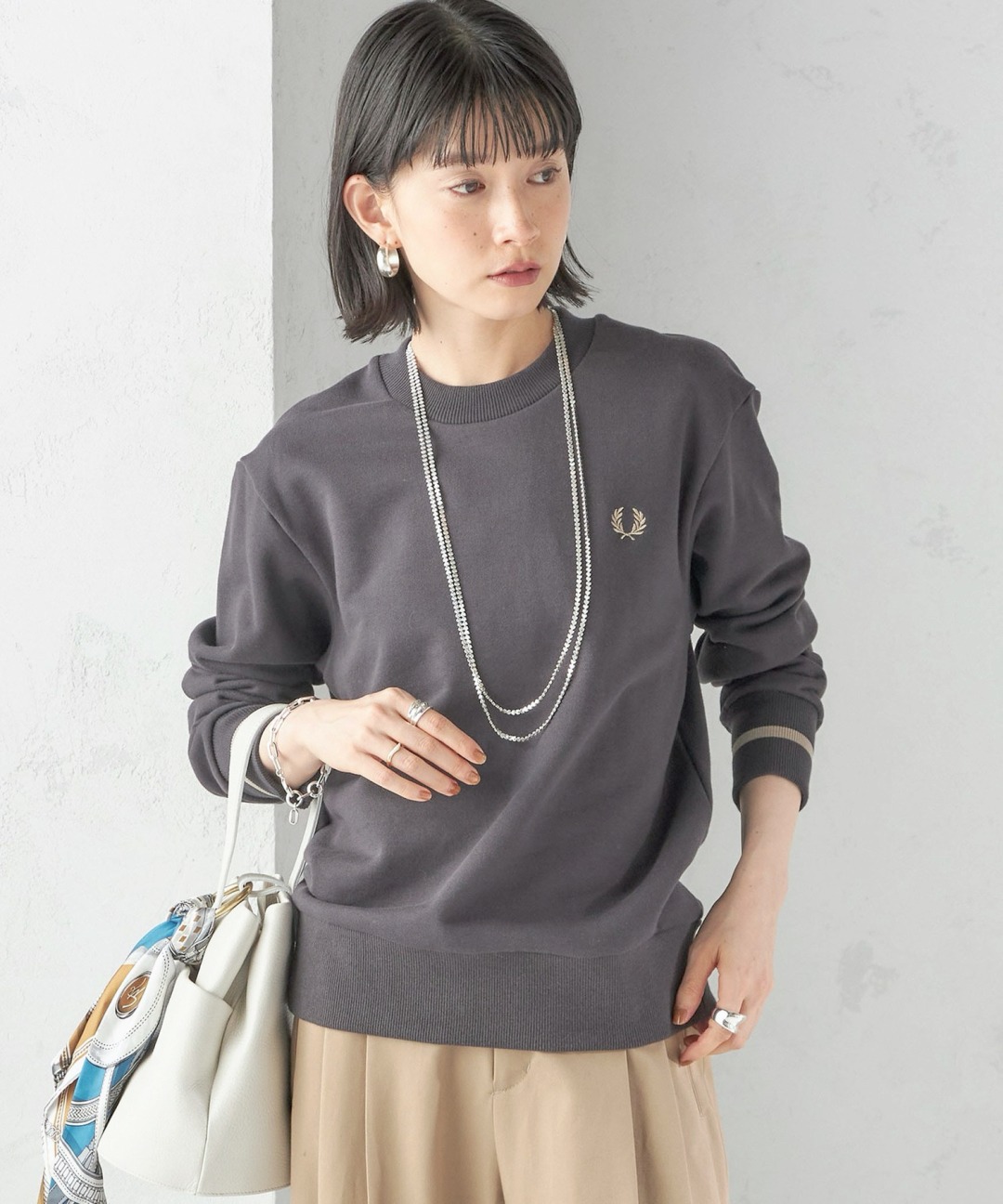 FRED PERRY 單條文袖口衛衣
