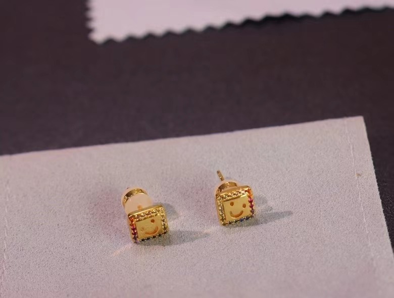 微笑小方牌,旁邊環繞著彩色鋯石,展現出俏皮與優雅的結合,傳遞靈動的快樂。
