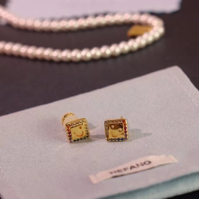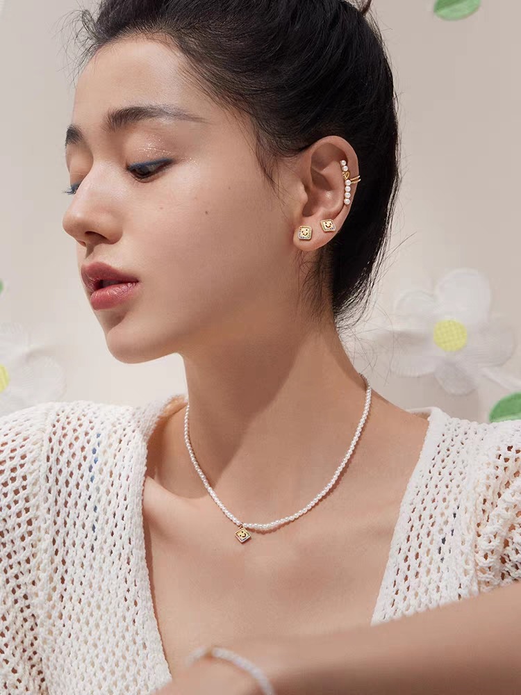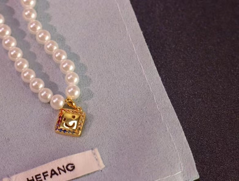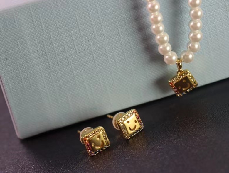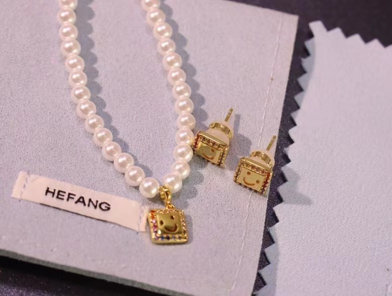 HEFANG 彩鑽笑臉珍珠項鍊/耳環 連禮盒