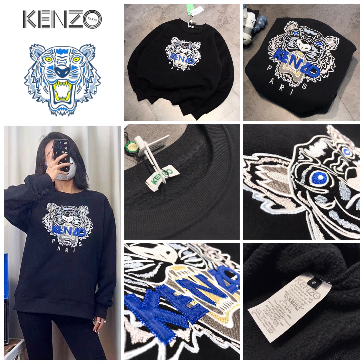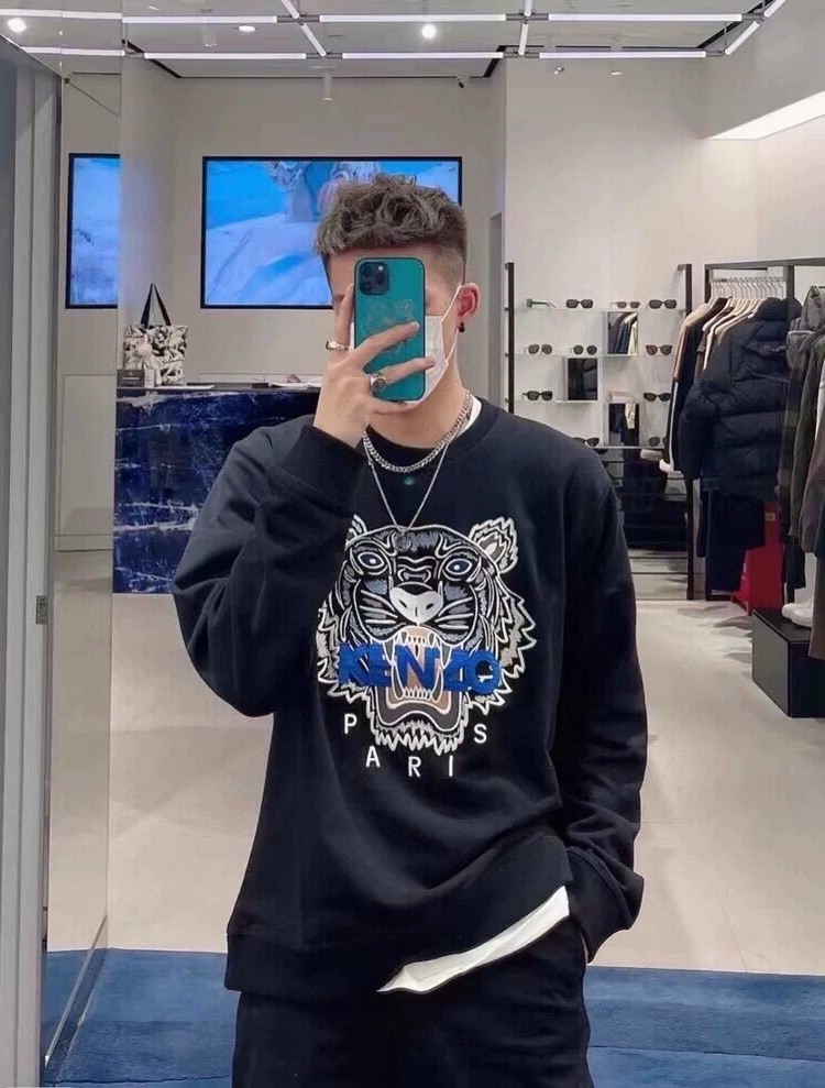 KENZO 虎頭刺繡加絨圓領衛衣