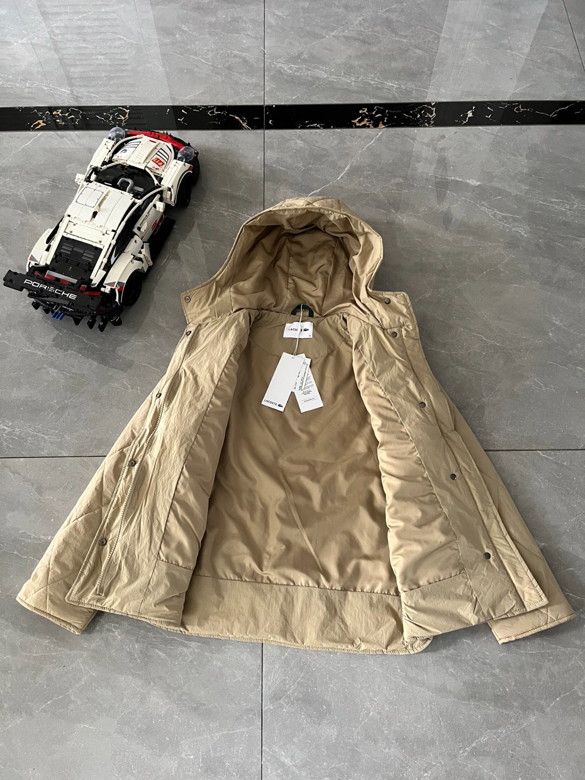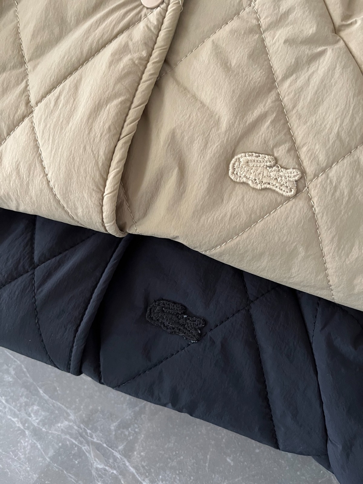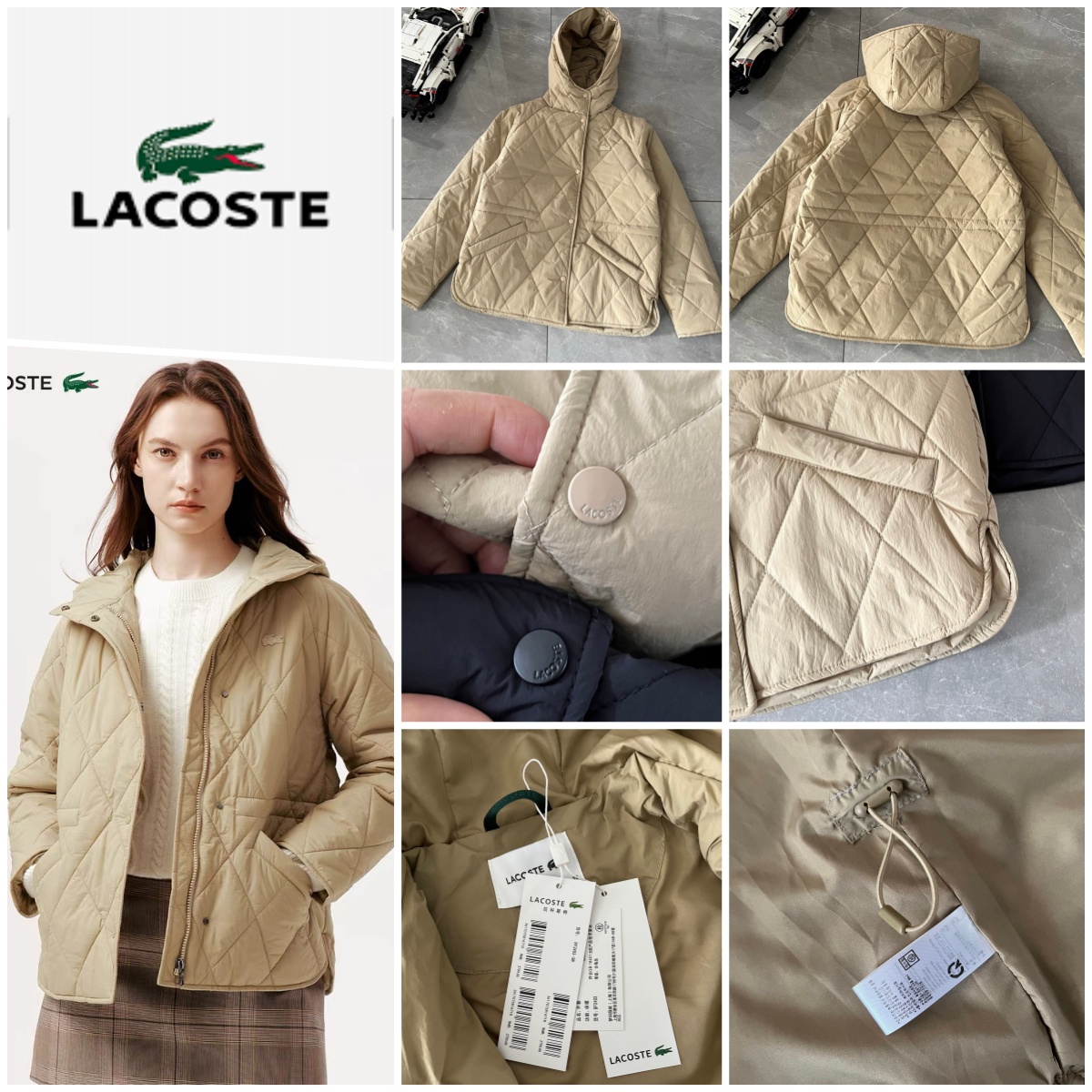 LACOSTE 短款格紋連帽拉鍊棉服外套