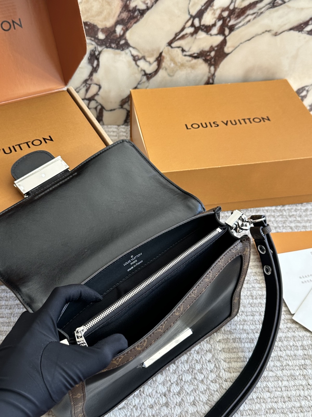 🔒 翻蓋設計,飾有銀色LV Initials標誌,增添品牌識別度 ✨