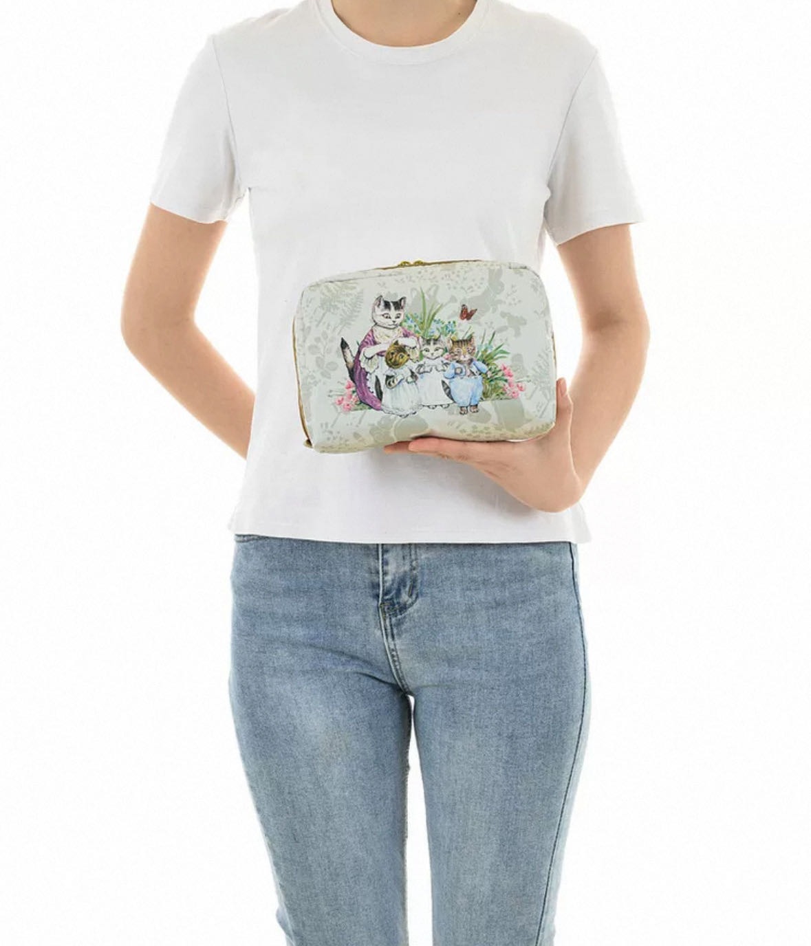 將萌趣貓咪與兔子家族的插畫印於包身,復古水彩畫風精緻細膩,既是實用化妝包,更是充滿童話感的時尚配飾,喚醒你對純真童話世界的美好情懷
