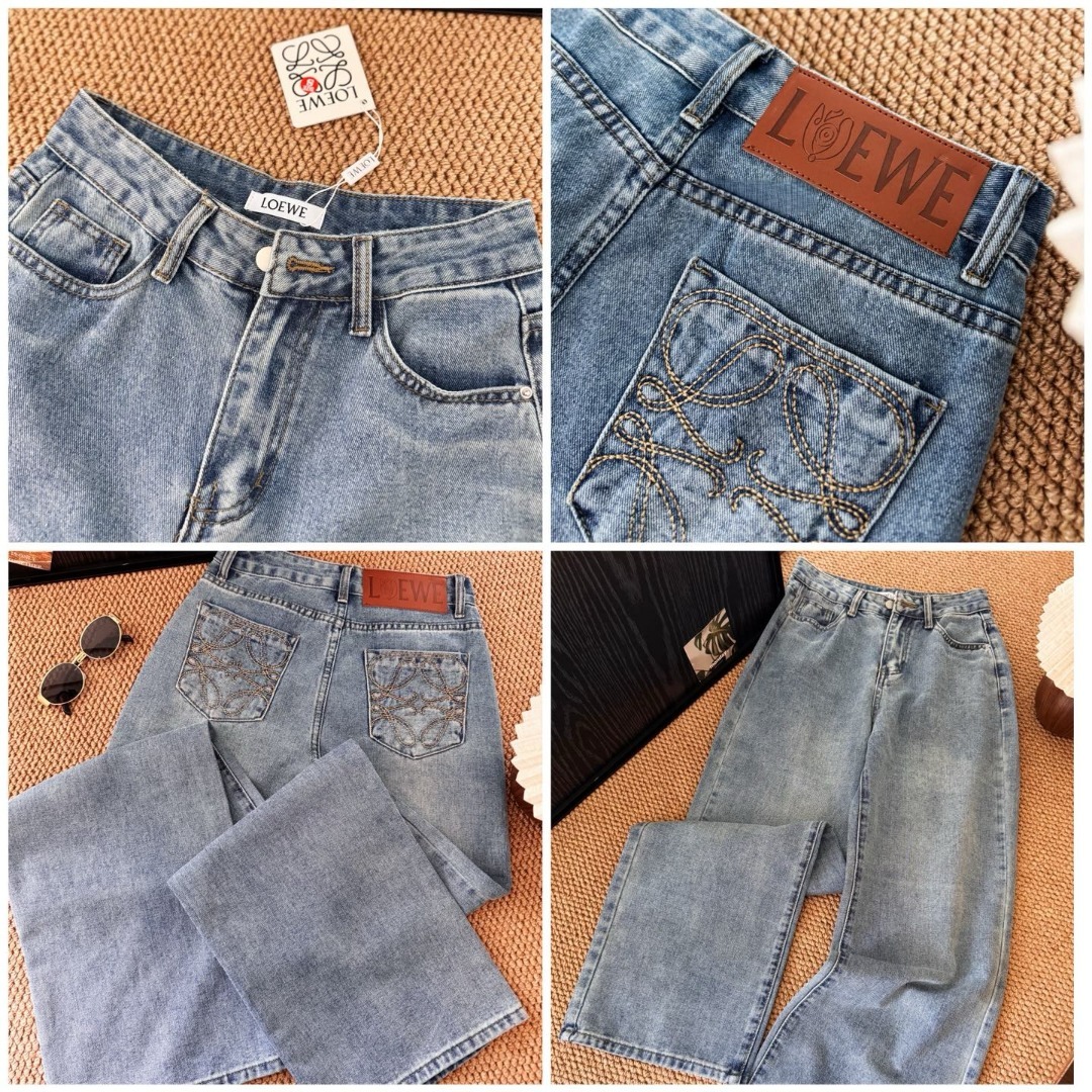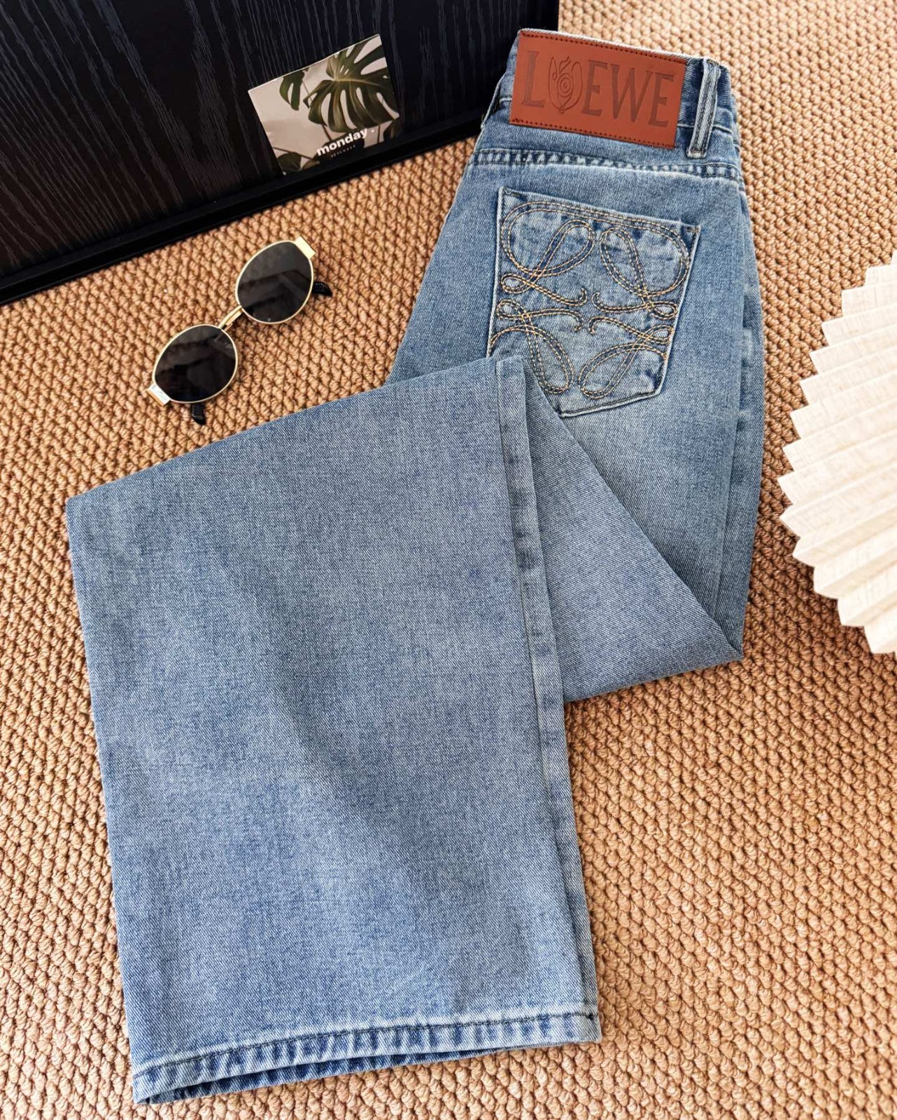 Loewe 皮牌後口袋刺繡直筒牛仔褲