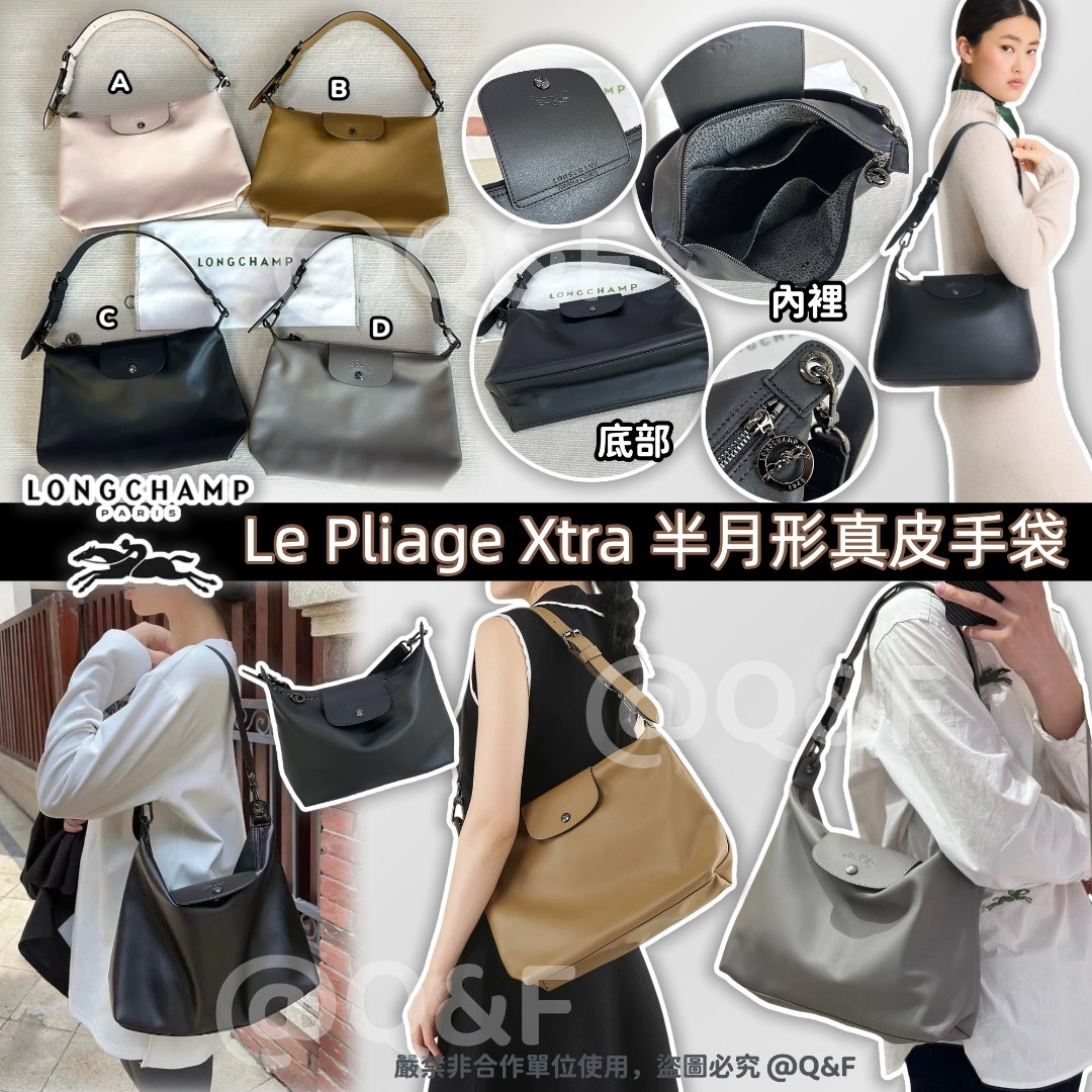 Longchamp Le Pliage Xtra 半月形真皮手袋