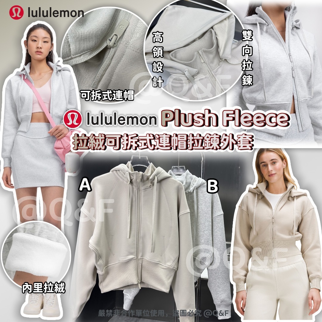Lululemon Plush Fleece 拉絨可拆式連帽拉鍊外套