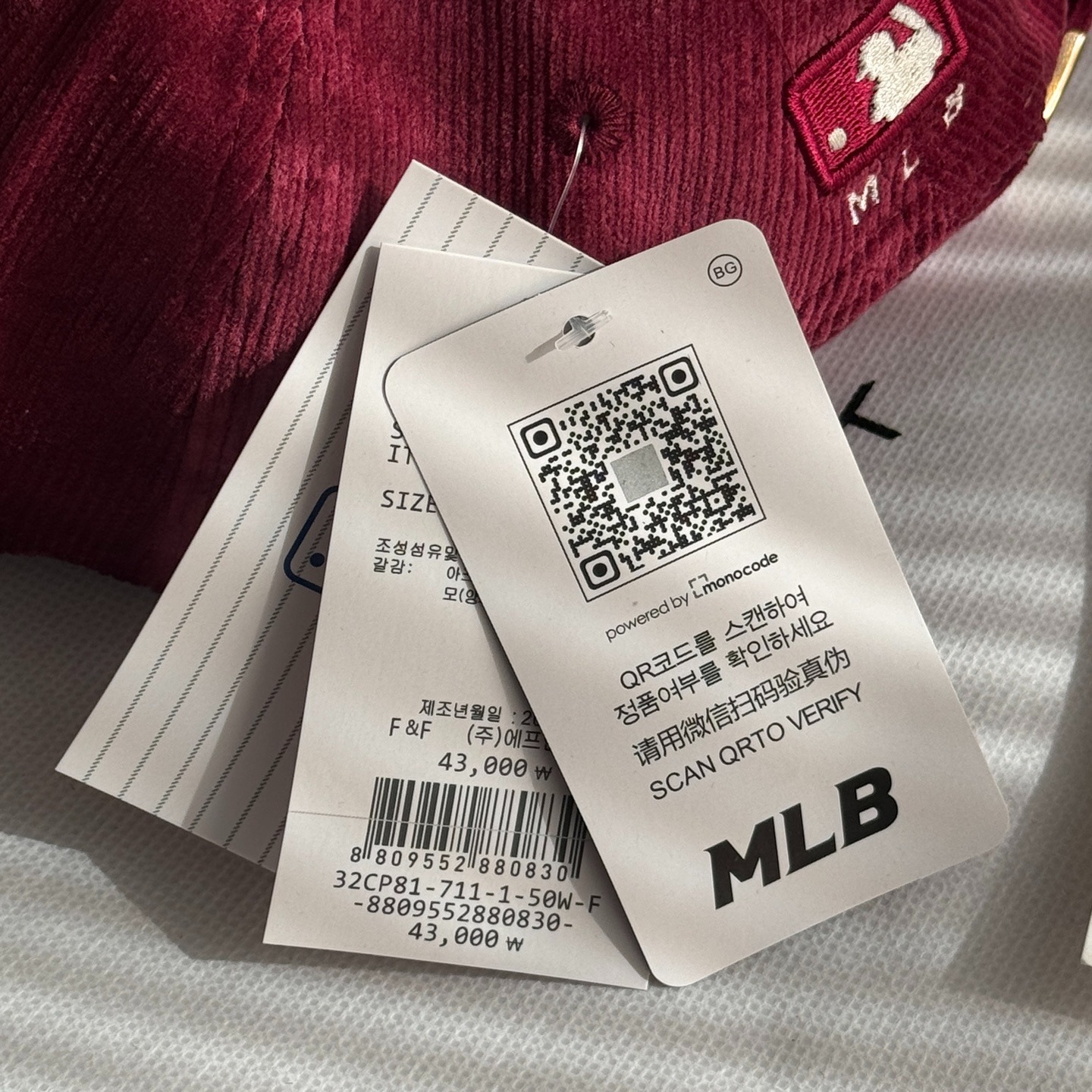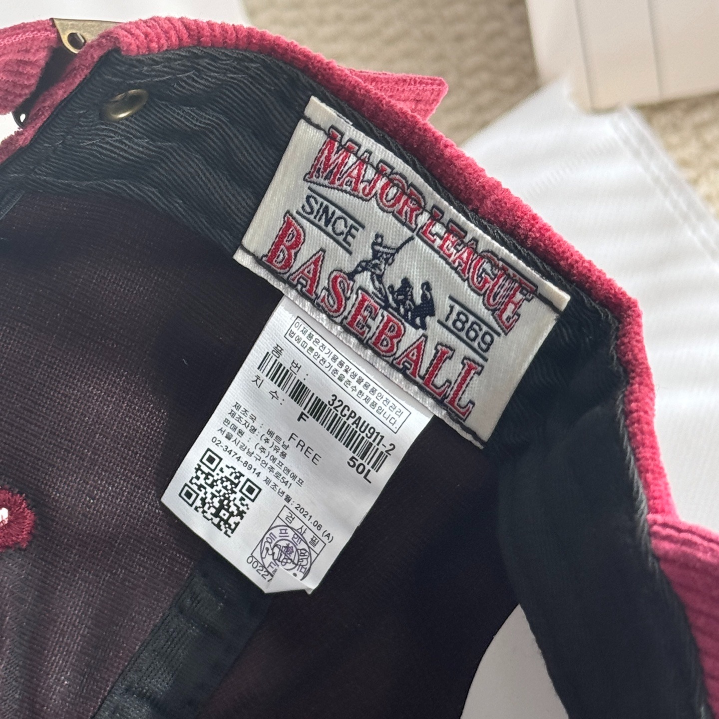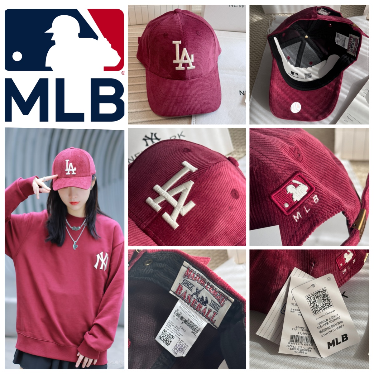 MLB 燈芯絨刺繡字母棒球帽