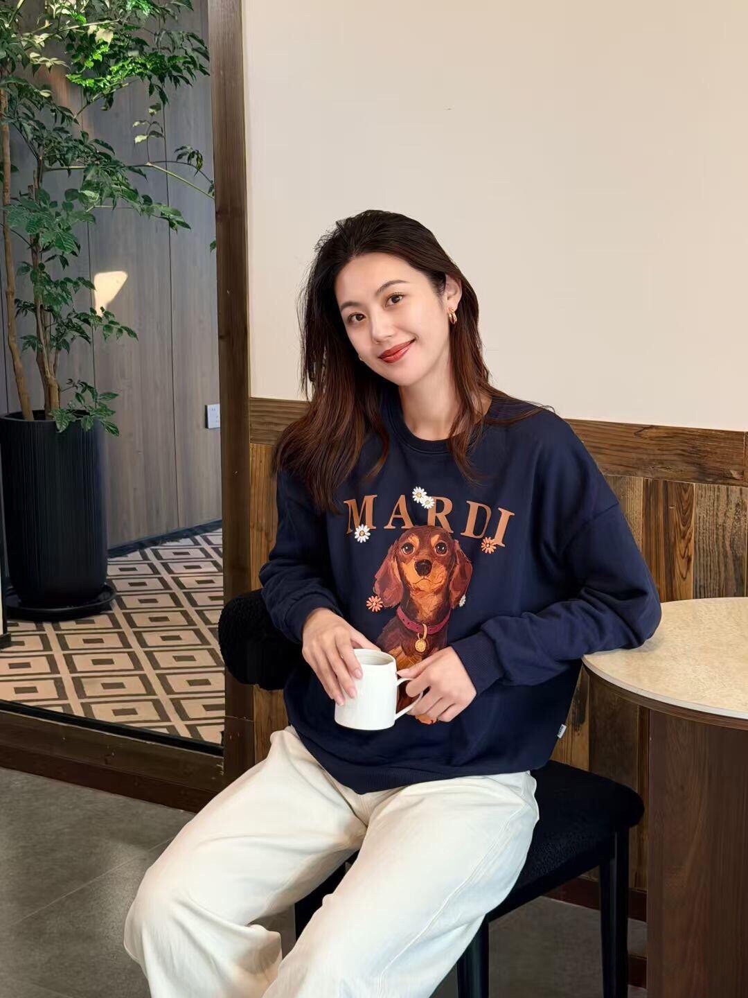 Mardi Mercredi 花朵狗狗印花圓領衛衣