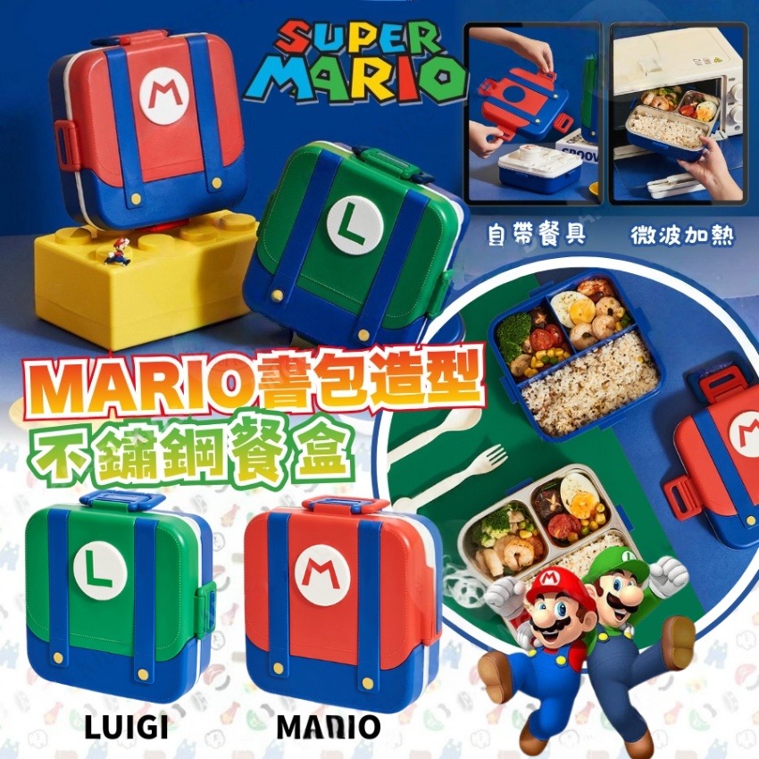 帶飯返工返學勁得意!💥 呢款超級馬里奧書包造型不鏽鋼餐盒,外型勾起童年回憶,內裡實用度爆燈~ 自帶三格分隔、可拆式304不鏽鋼內膽,仲可以放入微波爐加熱,超級方便!