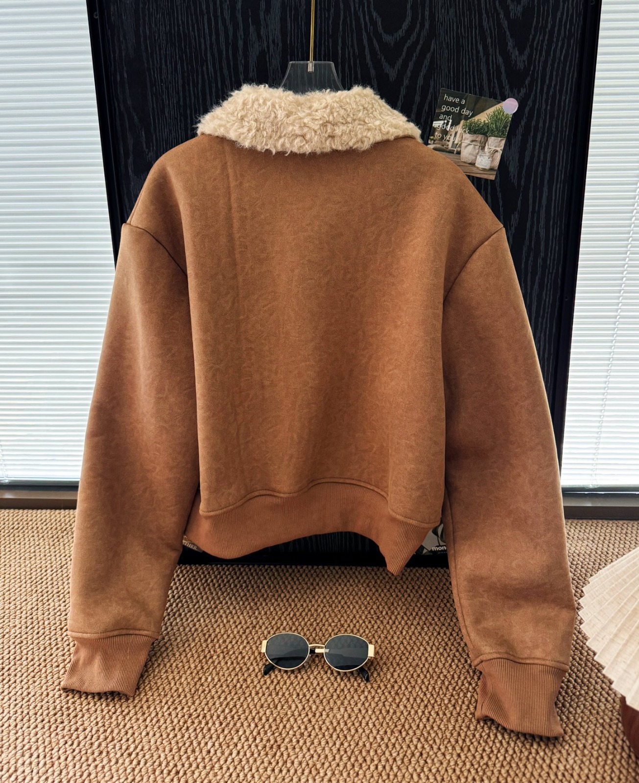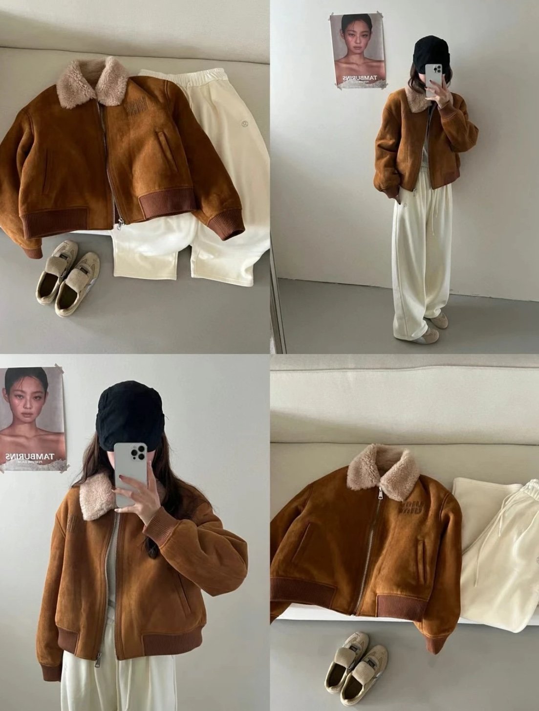 🍂 棕色麂皮外層與羊羔毛內裡完美結合,溫暖時尚 😊