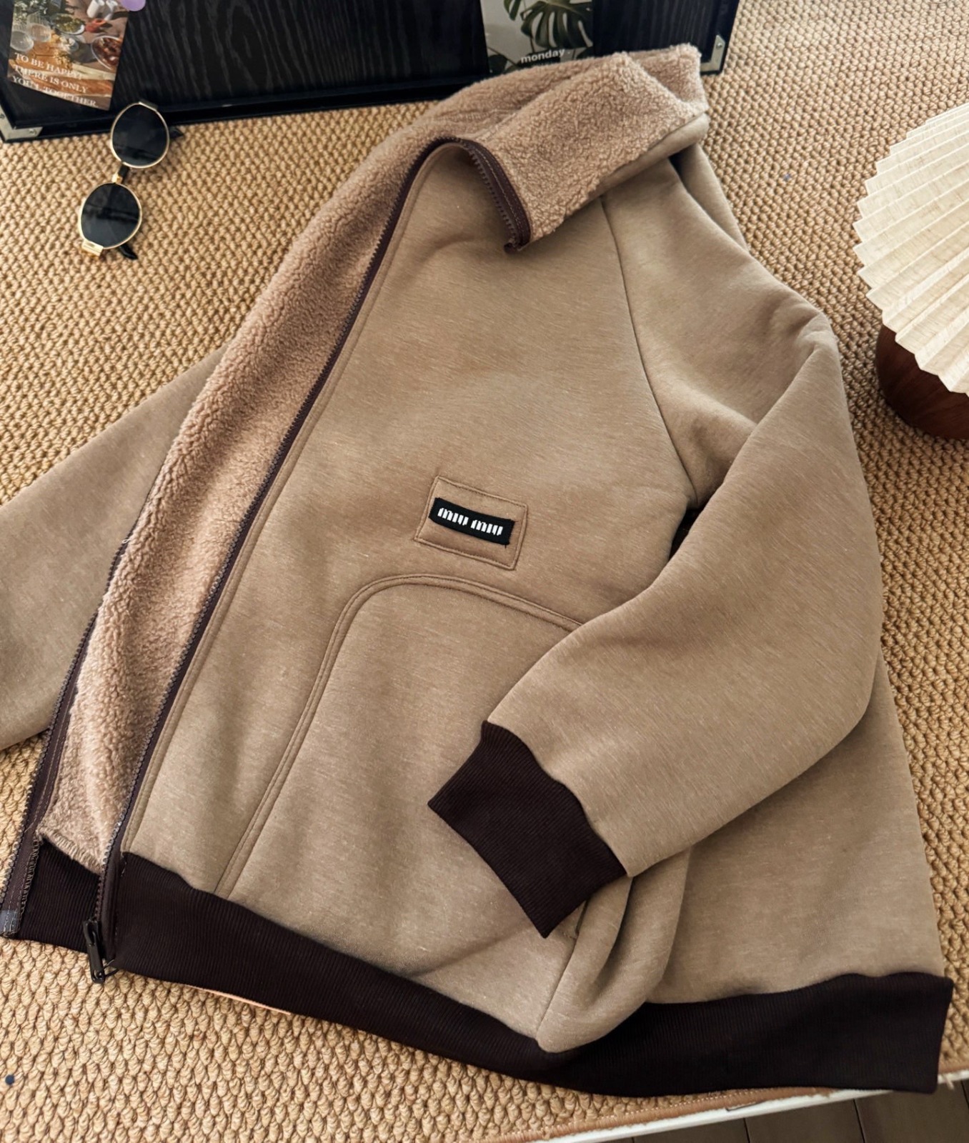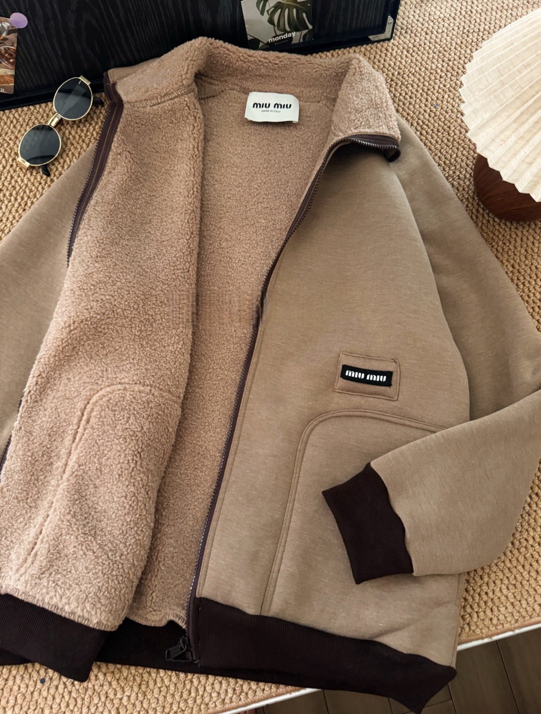 Miu Miu 徽標羊羔毛拉鍊外套