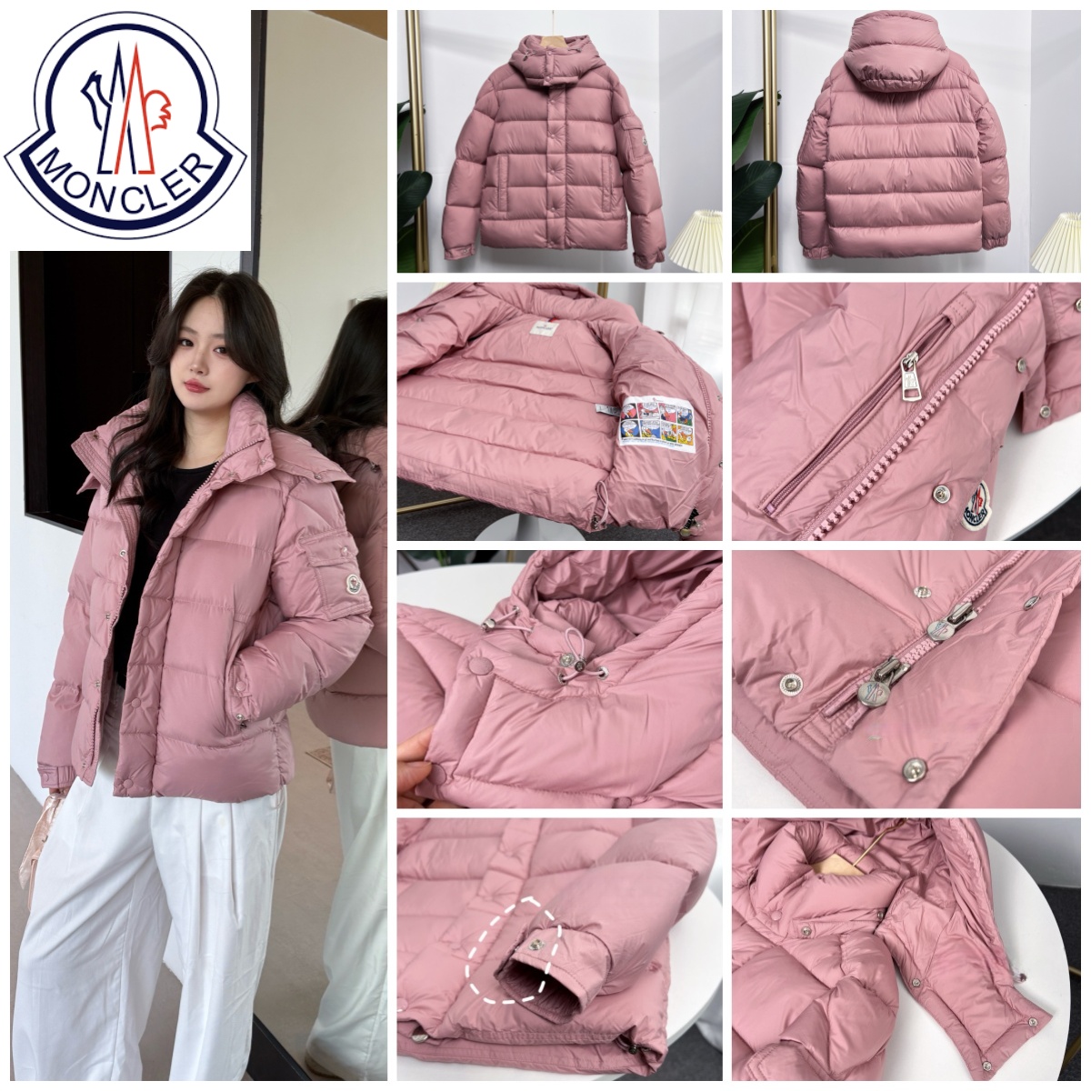 Moncler 短款啞光霧面連帽羽絨服