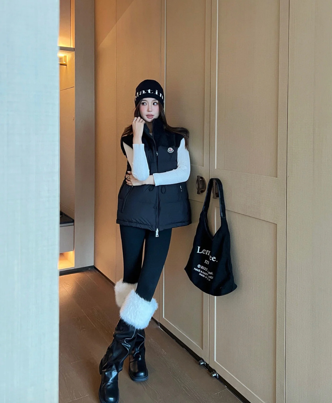 Moncler 羊羔毛拼接立領羽絨棉背心