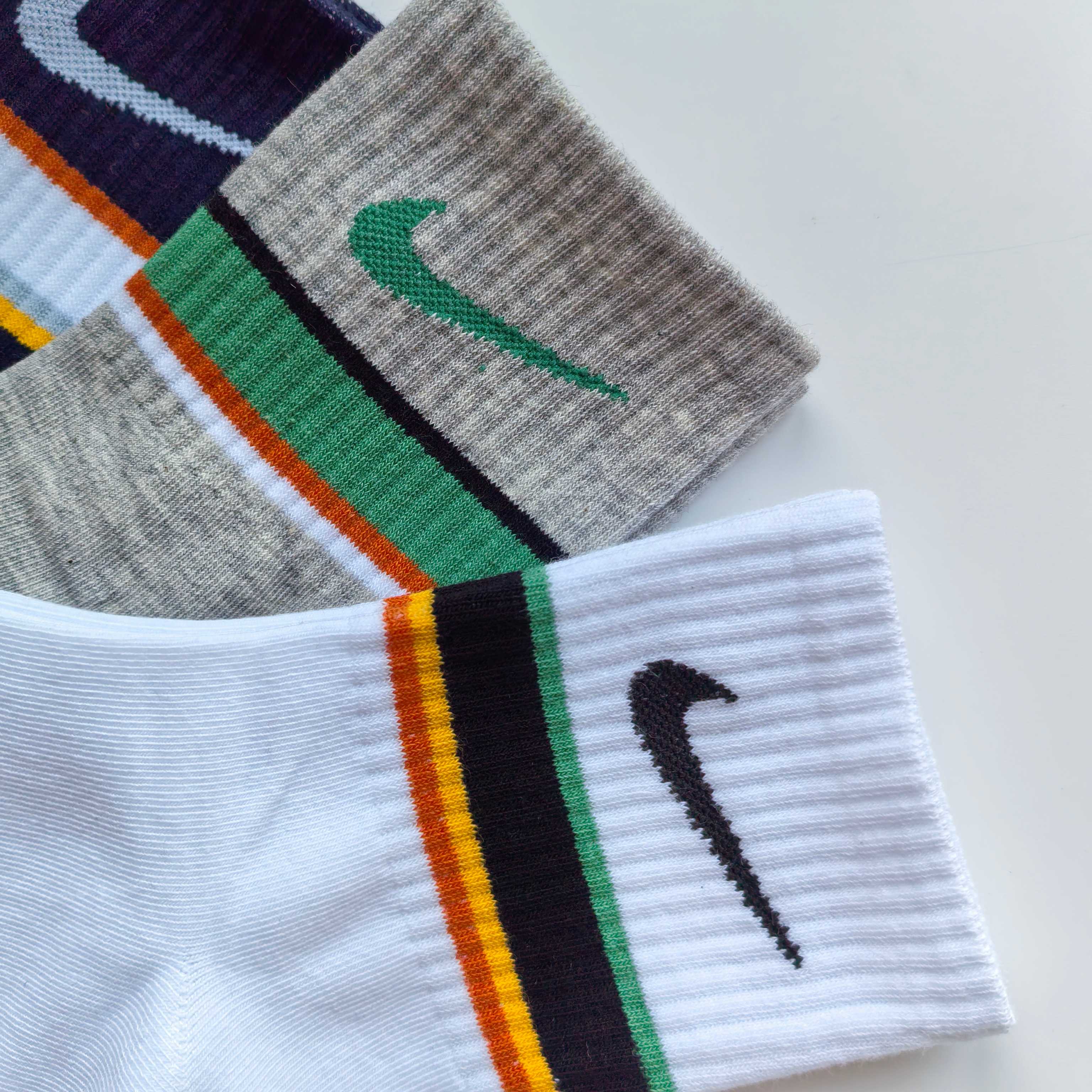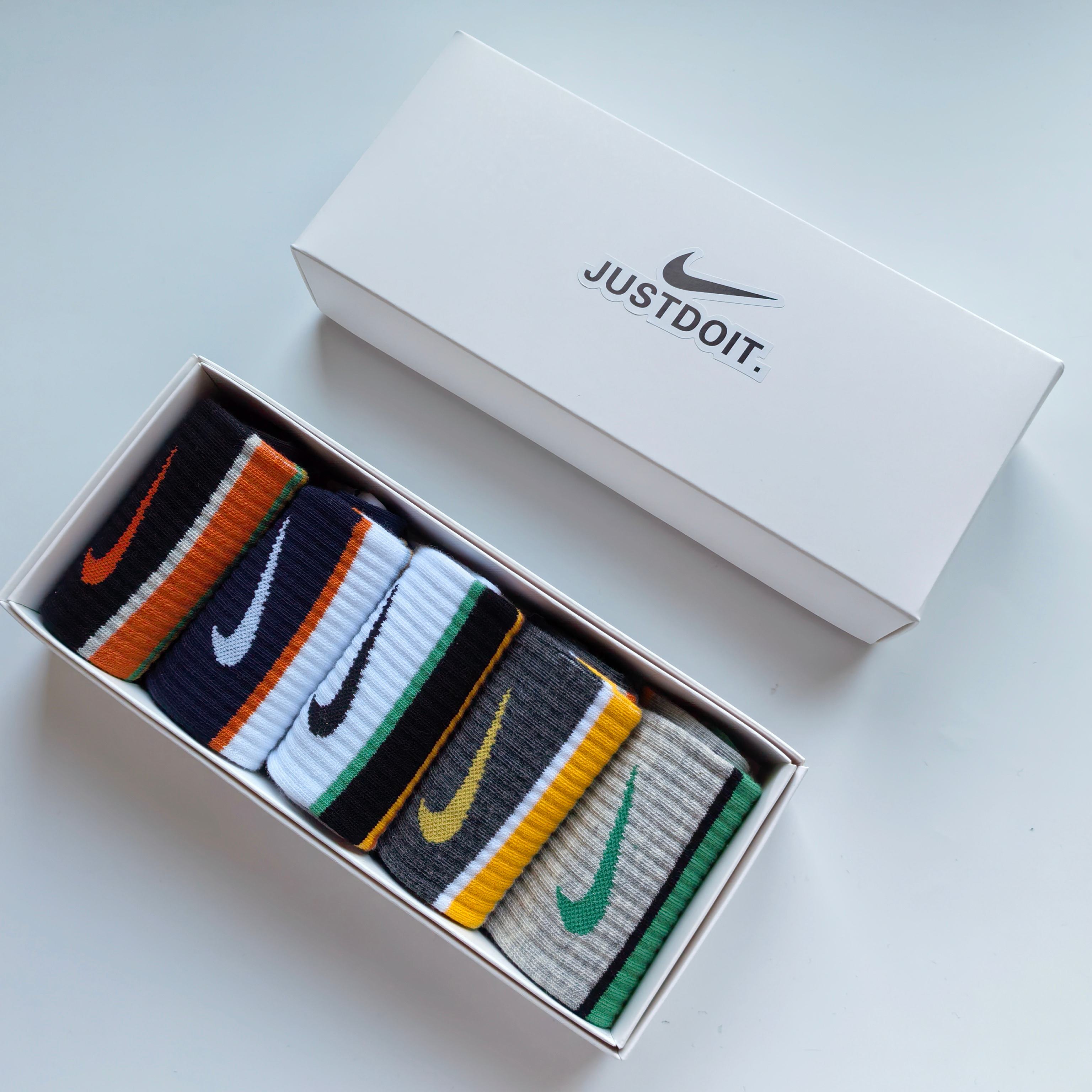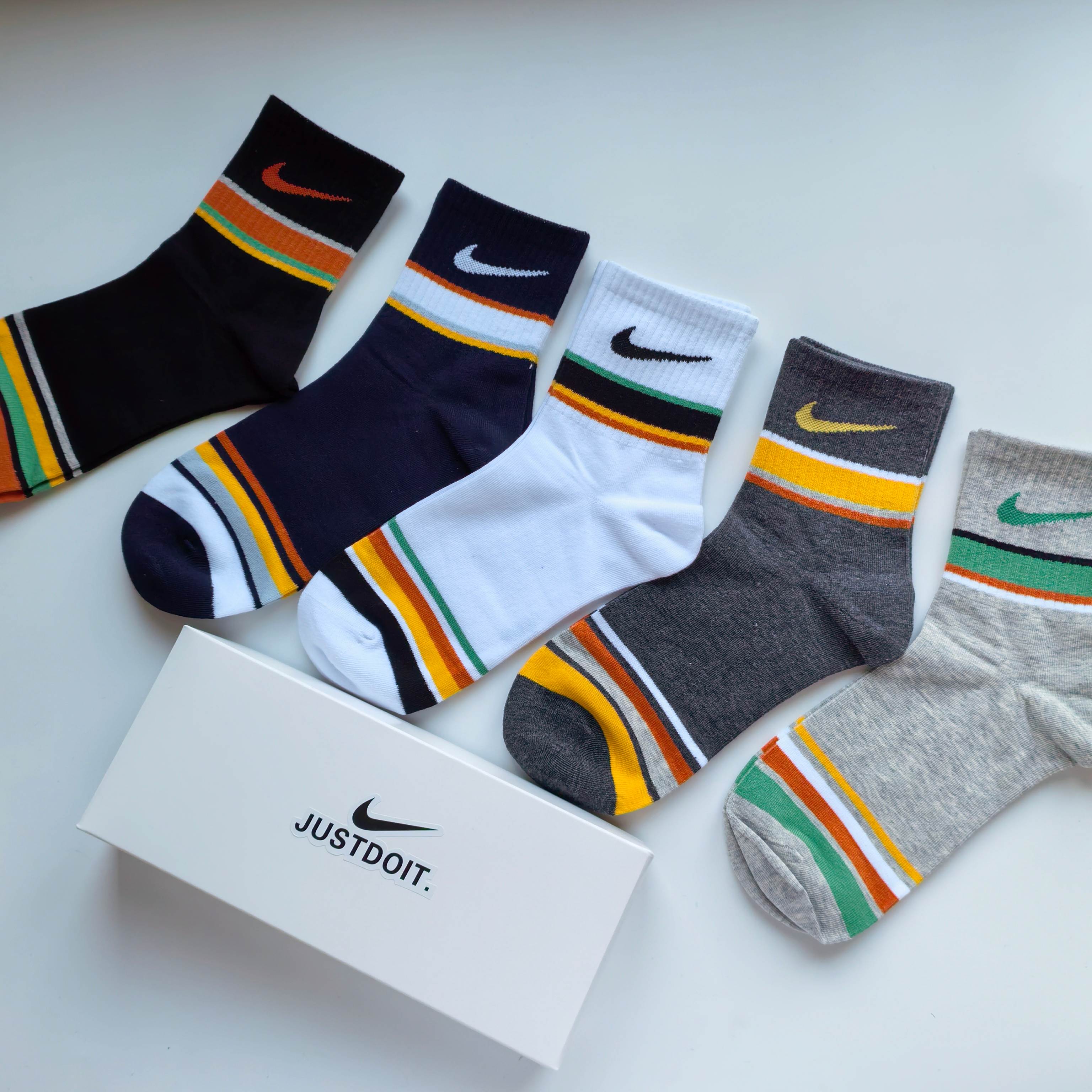 NIKE 彩條彩標中筒棉襪( 一盒五對)