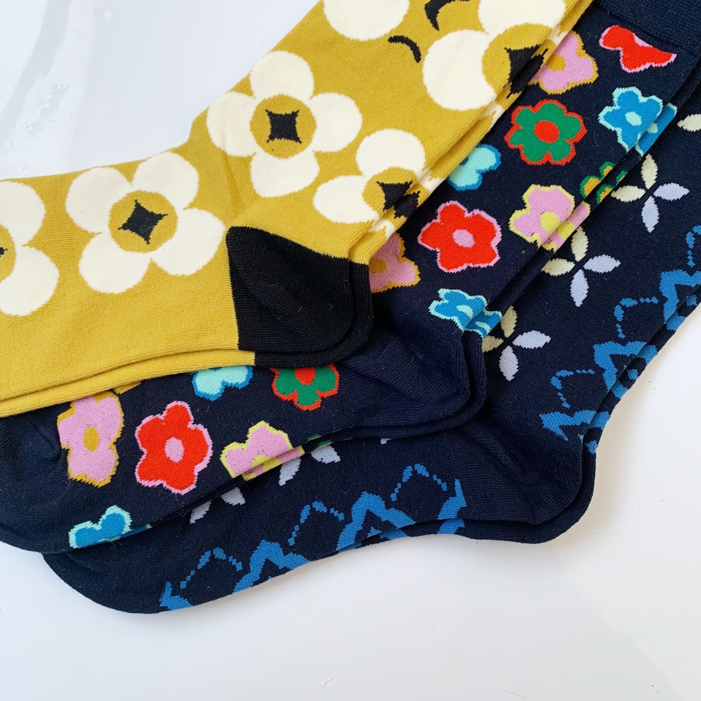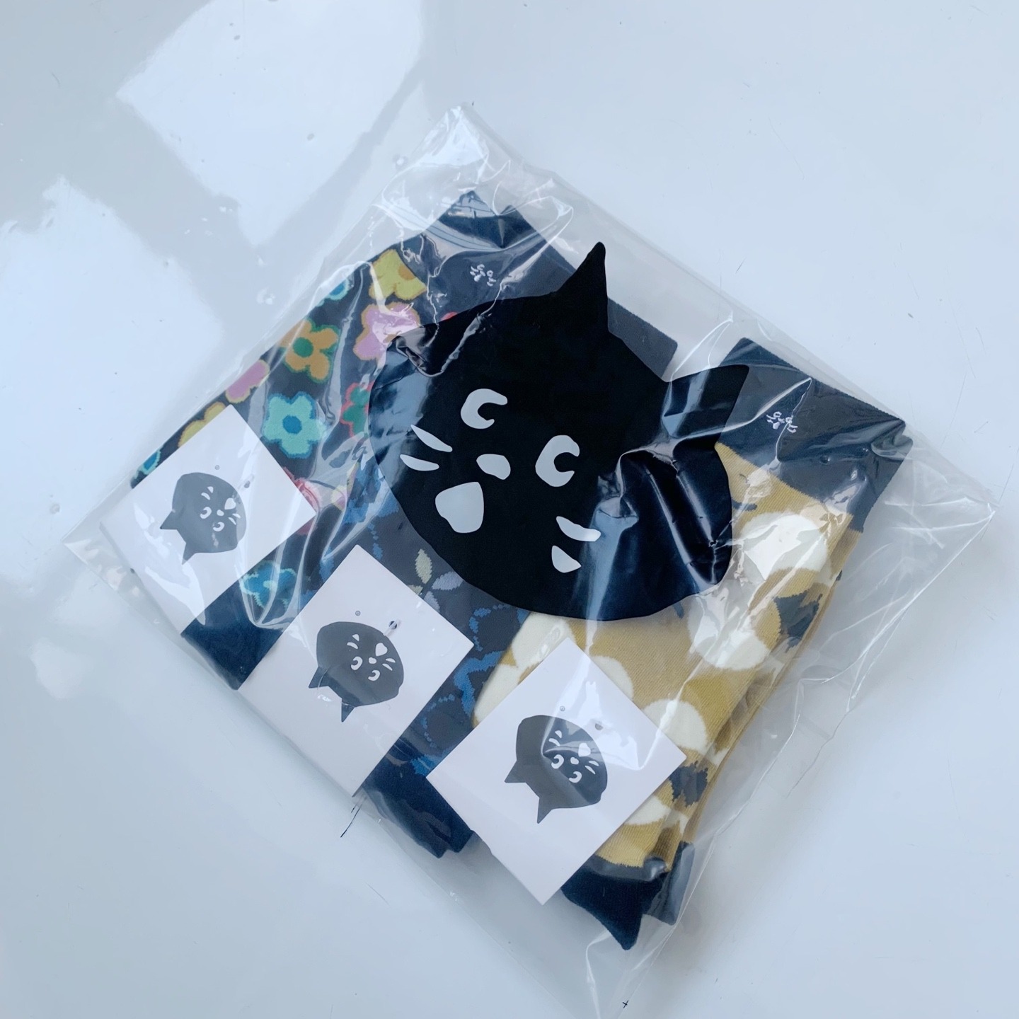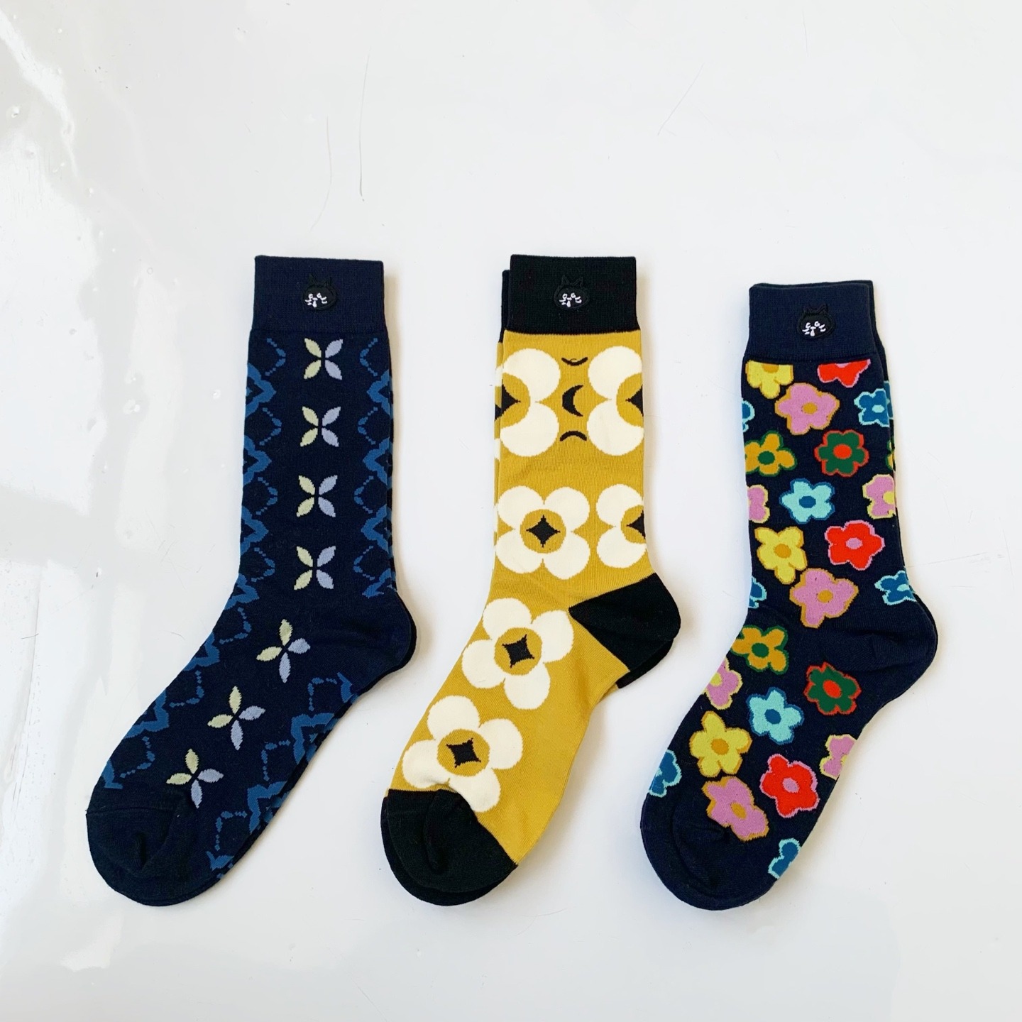 NYA日系驚訝貓花朵加厚中高筒襪(一套3對)