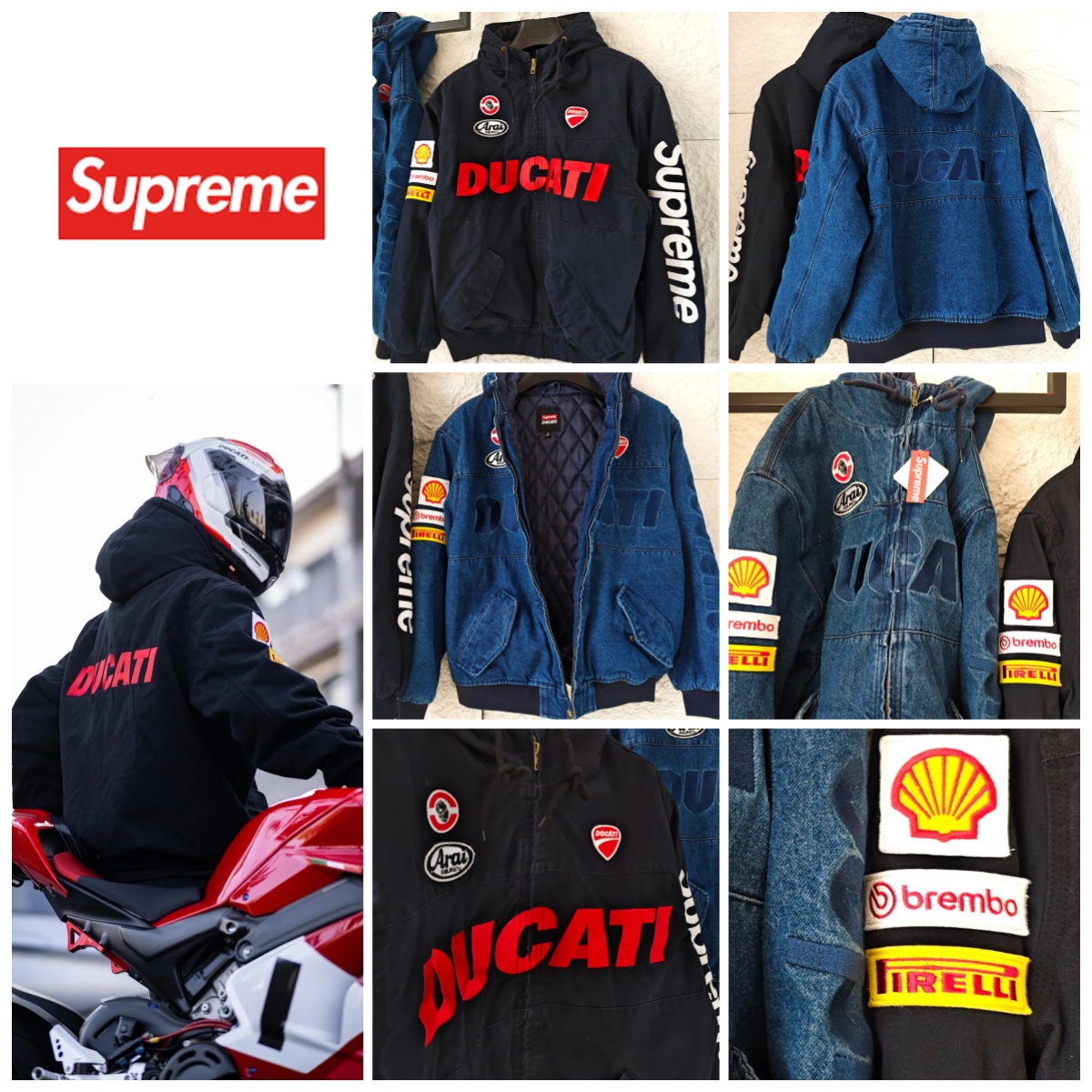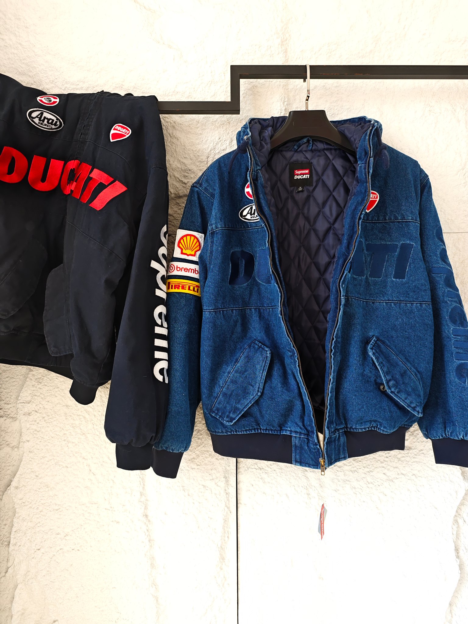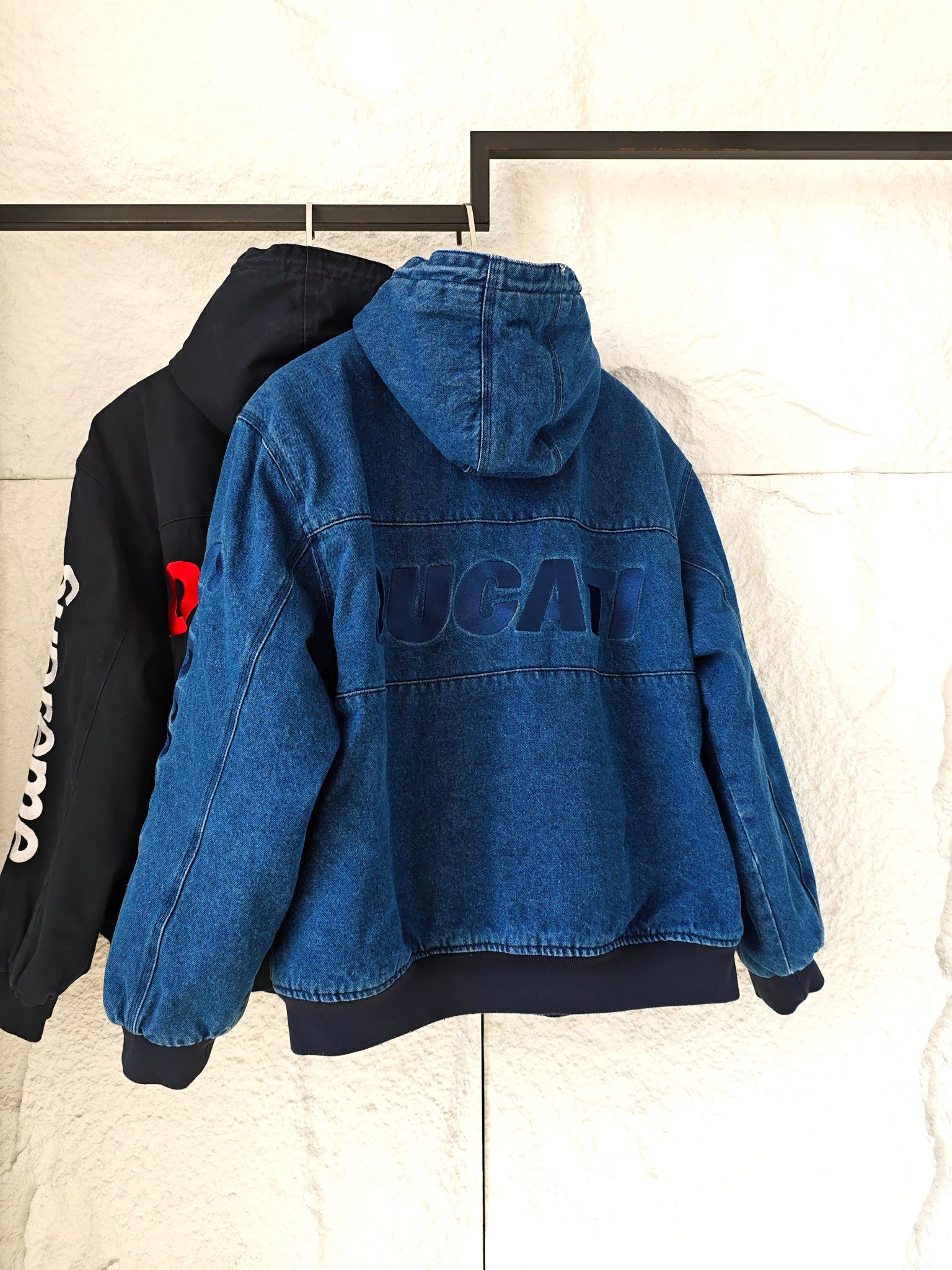 Supreme x DUCATI 機車牛仔拉鍊連帽棉服外套