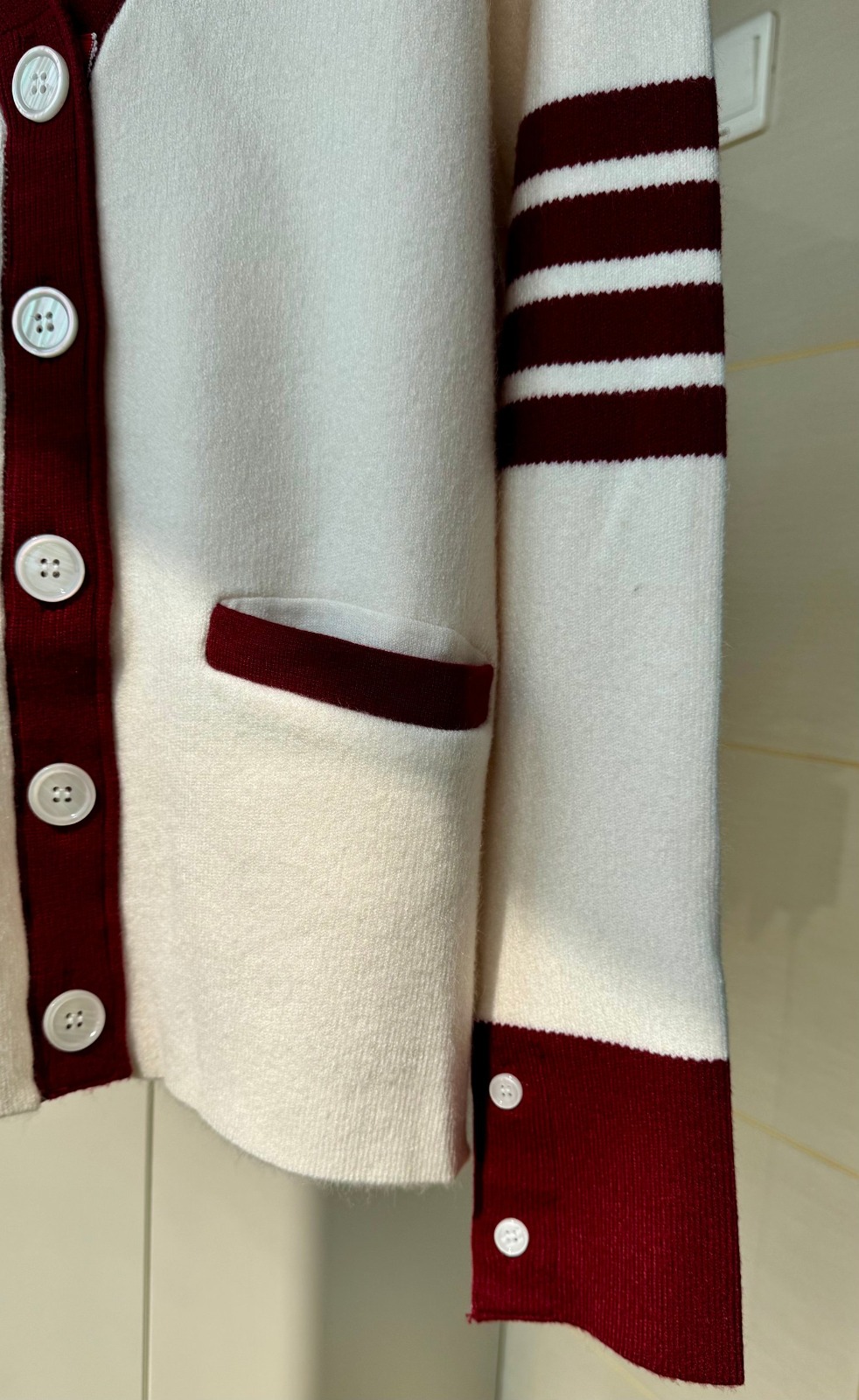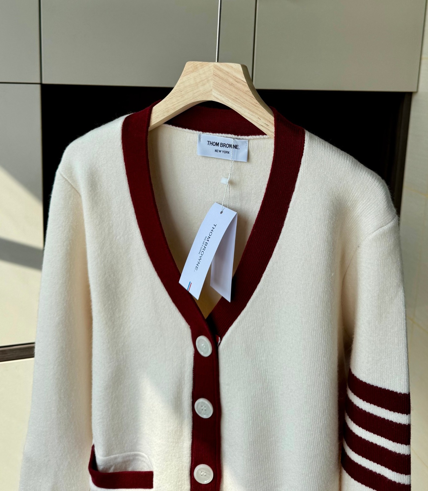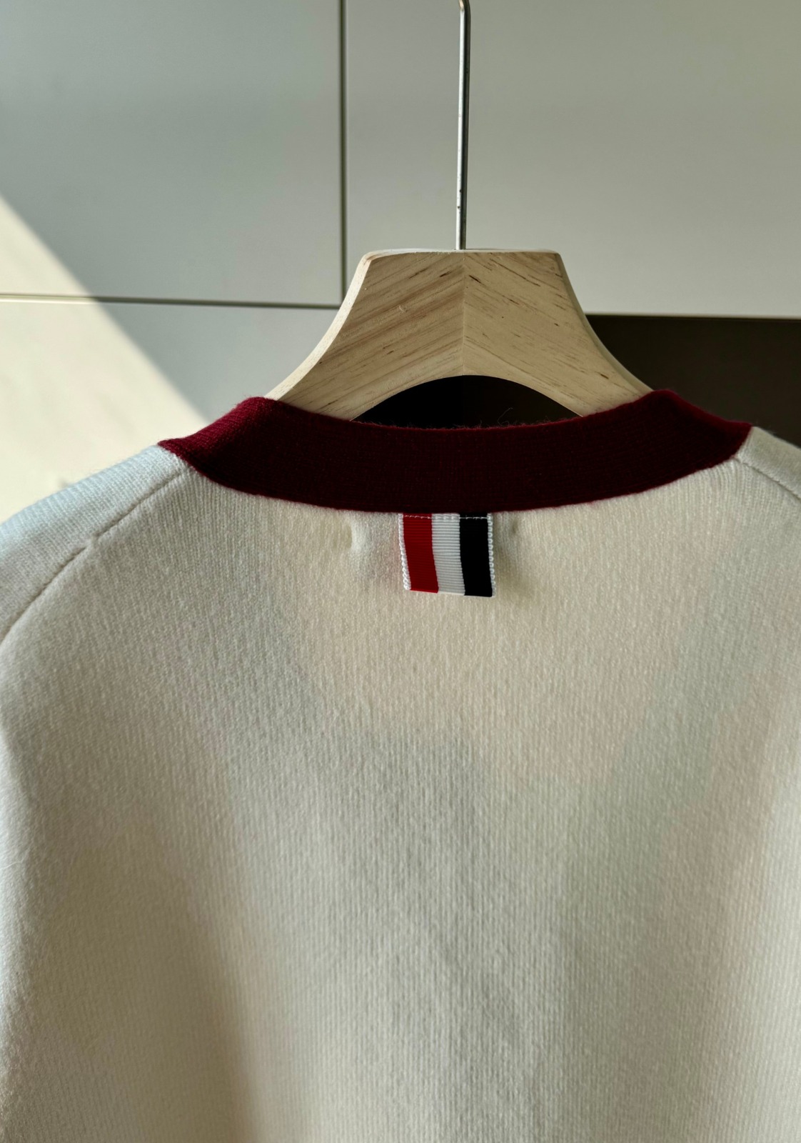 Thom Browne 四道槓拼色V領針織開襟冷衫