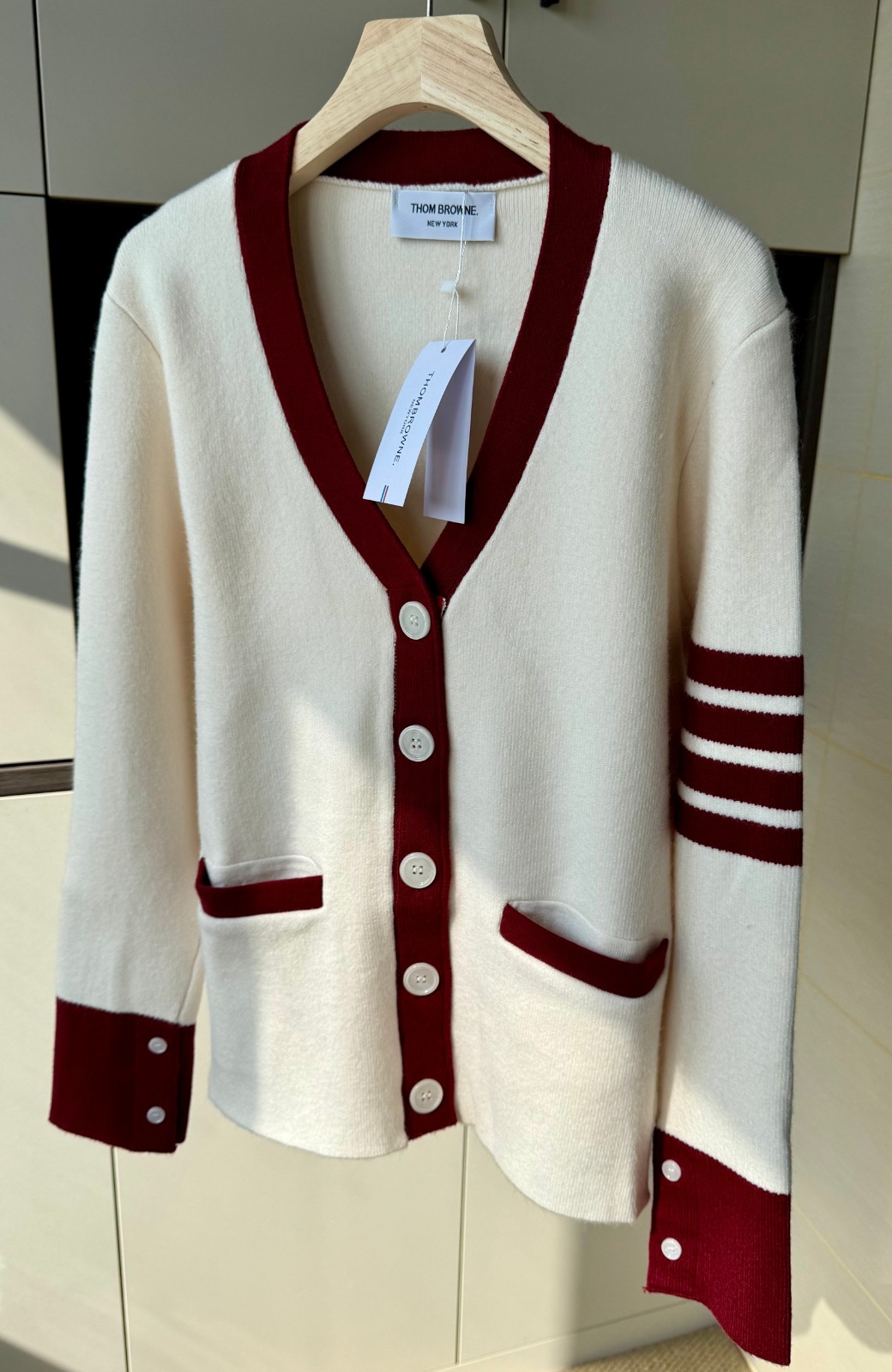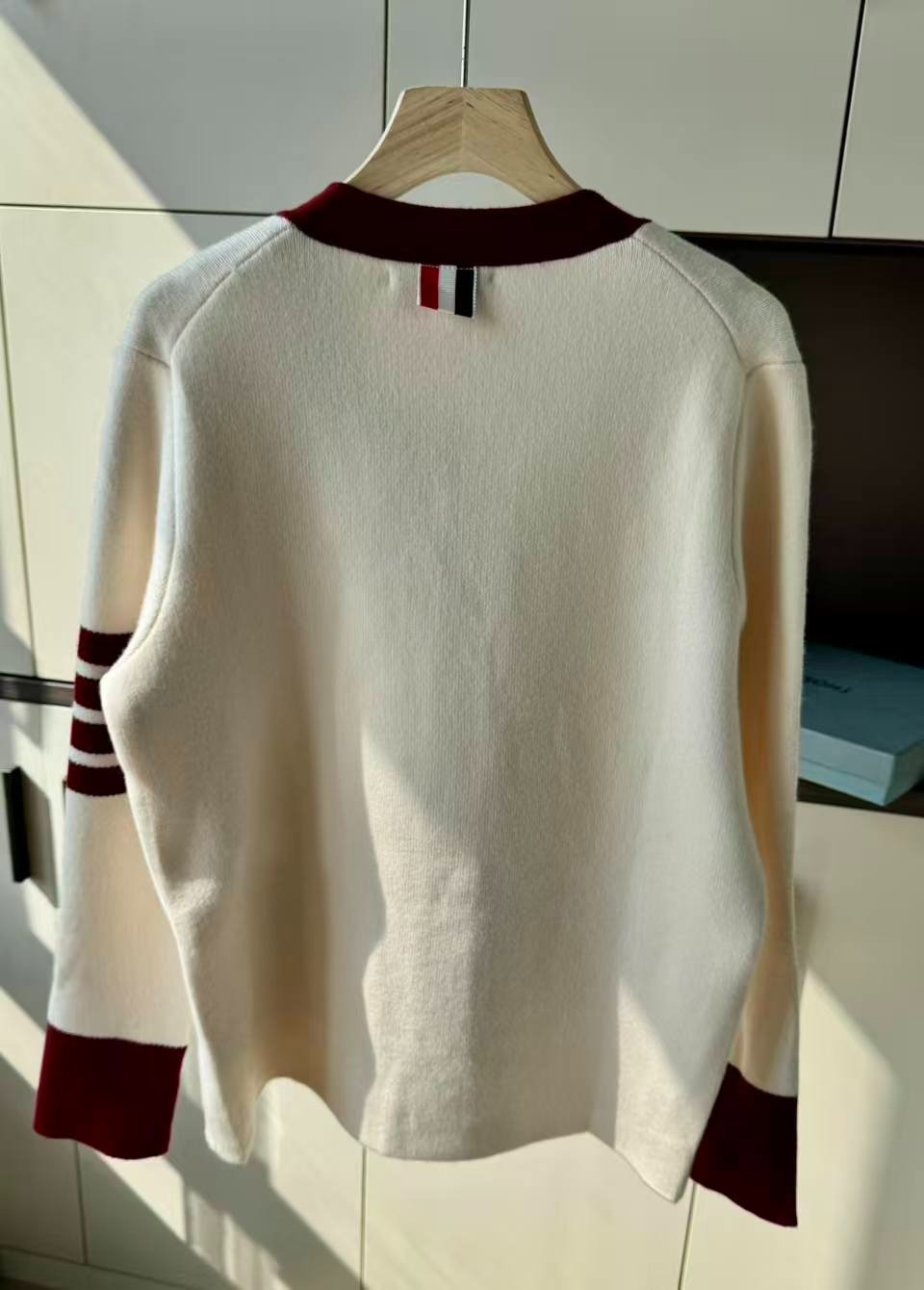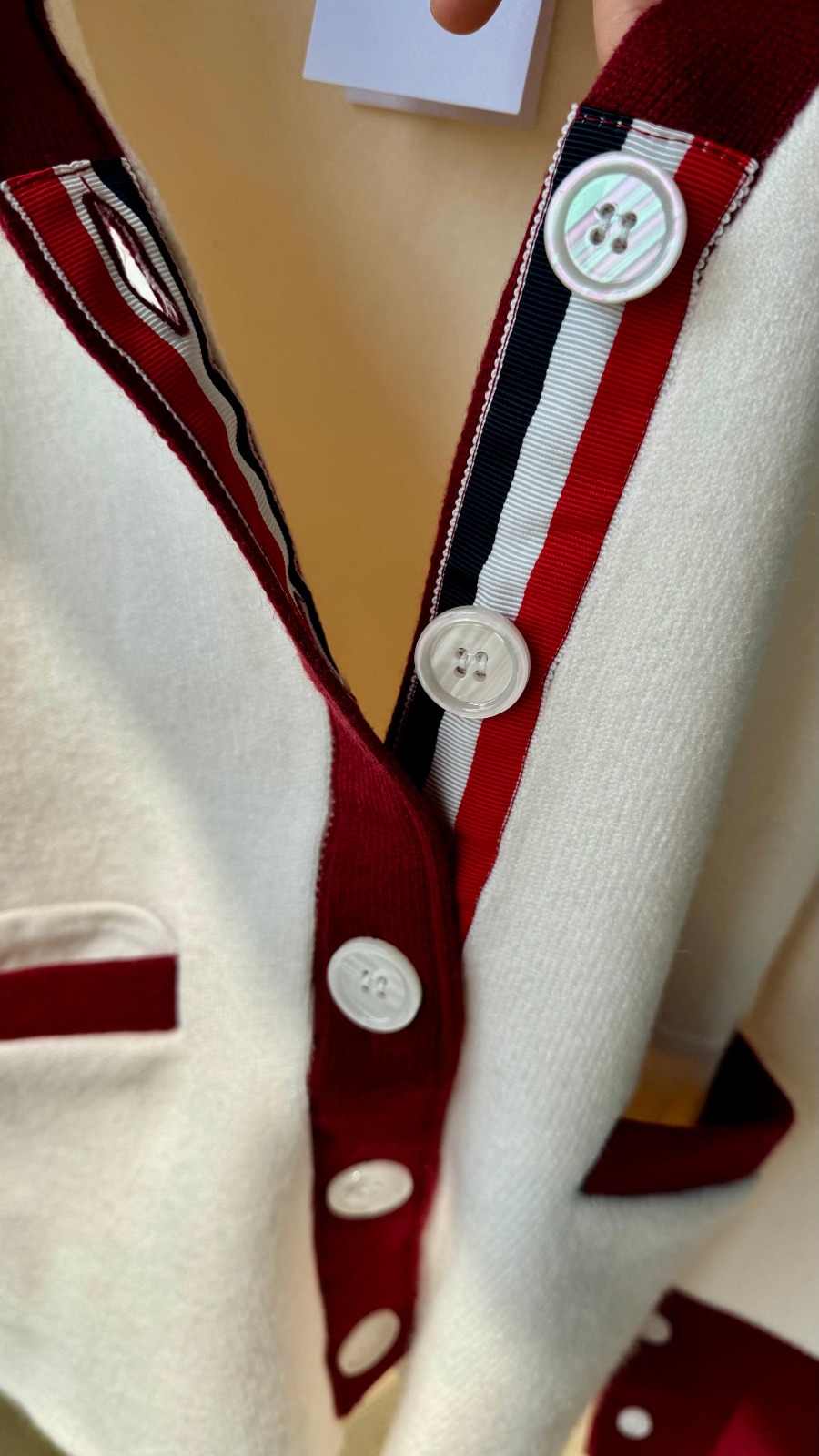 Thom Browne 四道槓拼色V領針織開襟冷衫