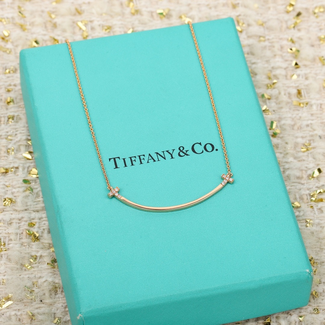 Tiffany T 純銀微笑帶鑽項鍊 連禮盒