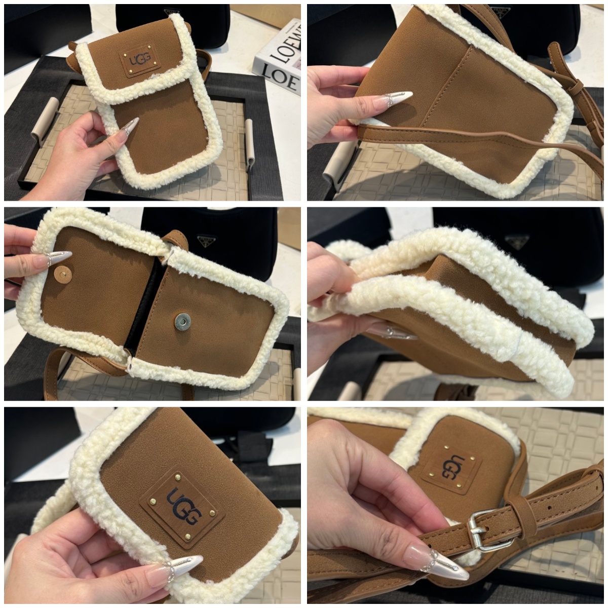 UGG 拼接羊羔毛小方包