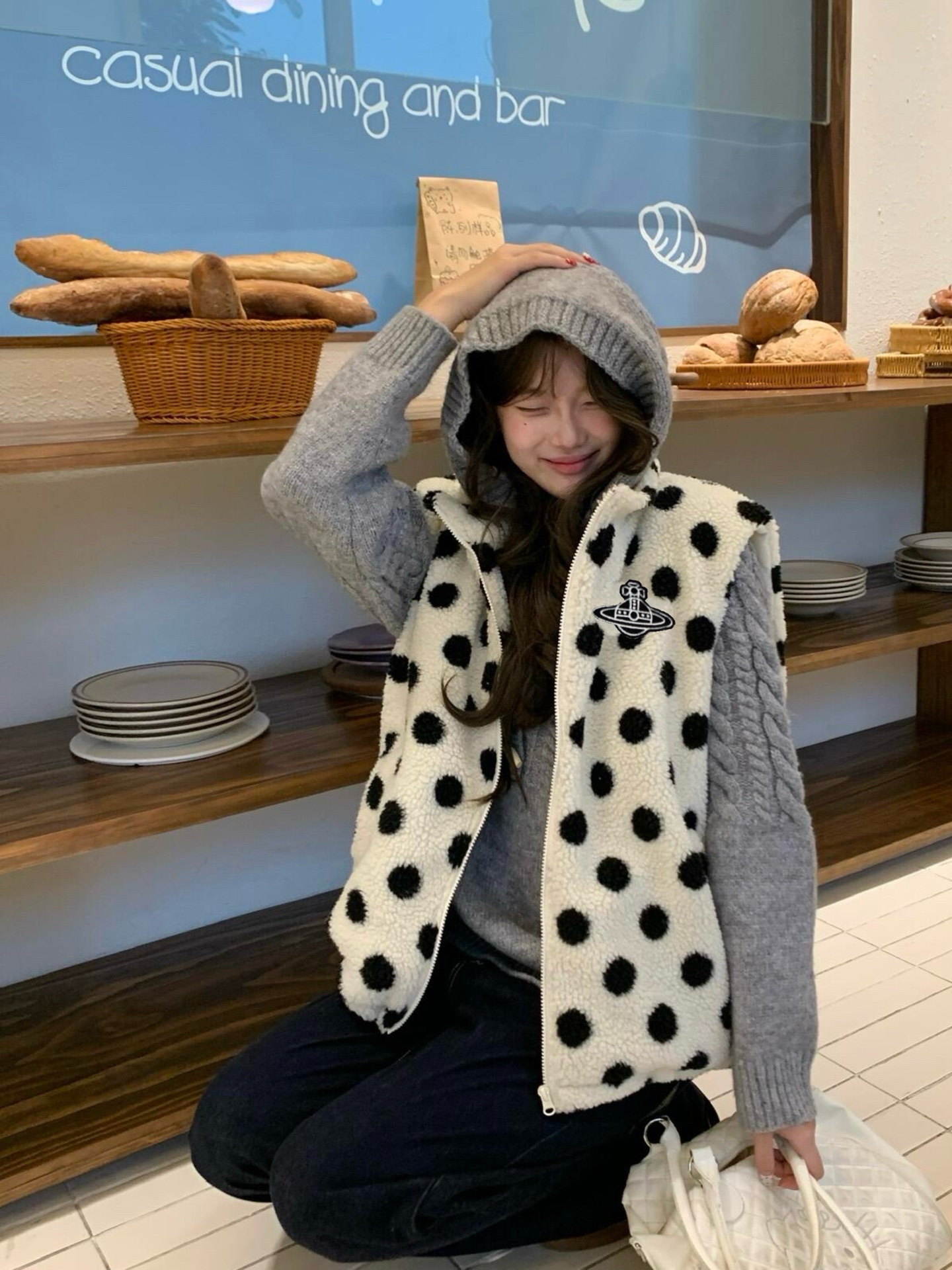 Vivienne Westwood 土星刺繡波點加棉羊羔毛背心