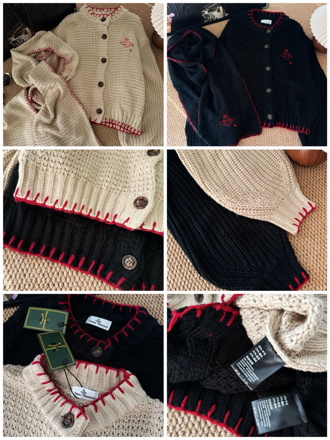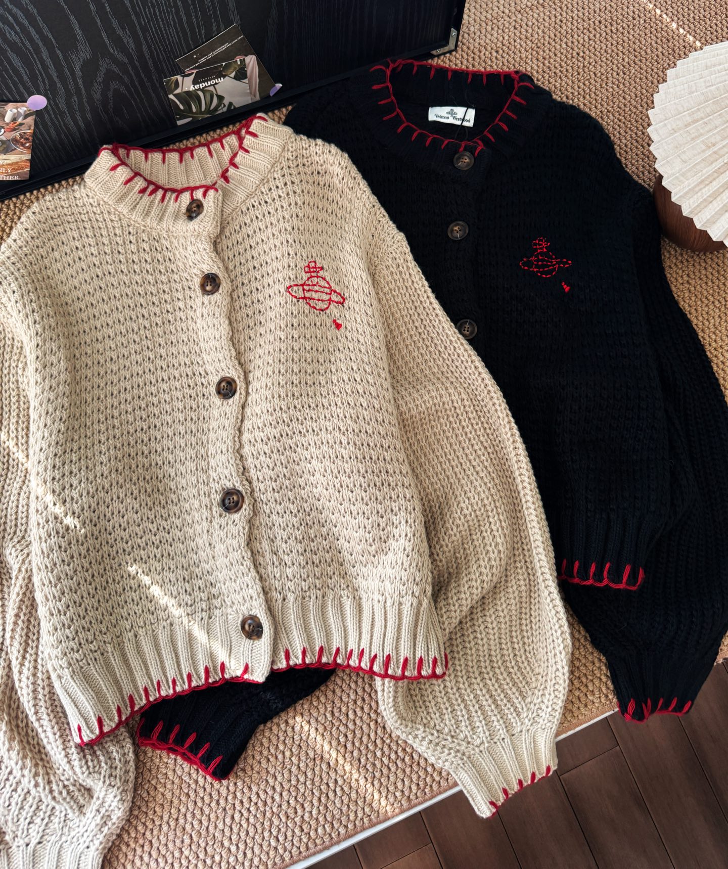 Vivienne Westwood 土星鈎針刺繡羊毛開襟冷衫 送圍巾