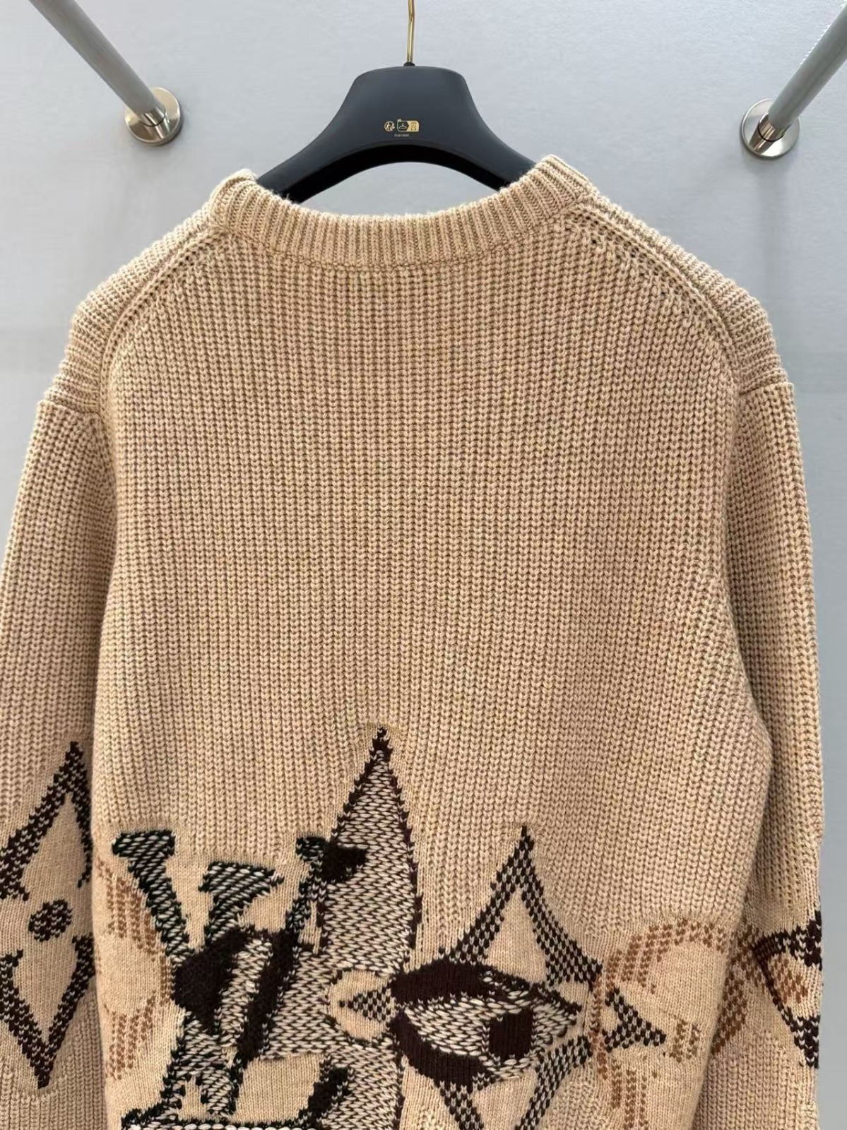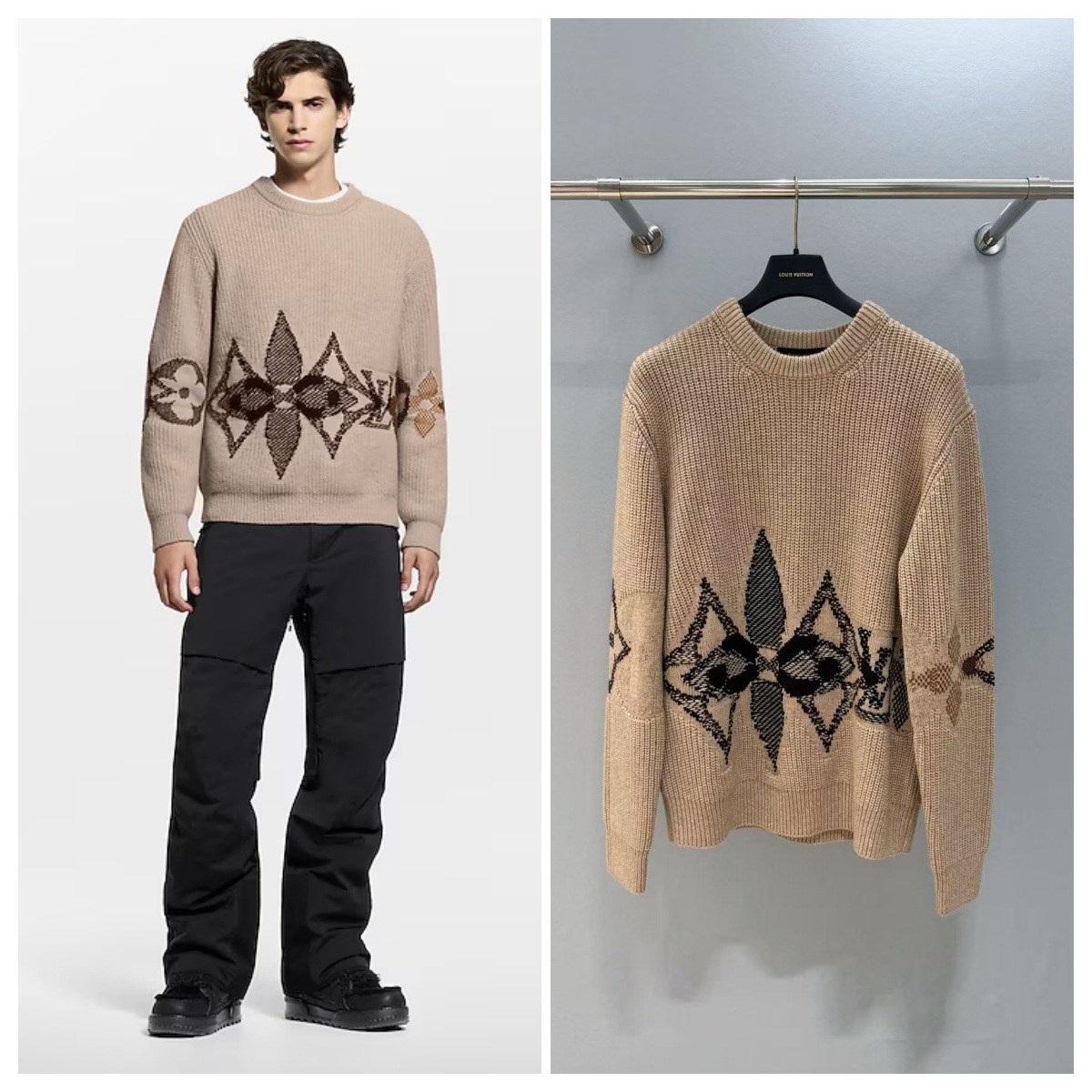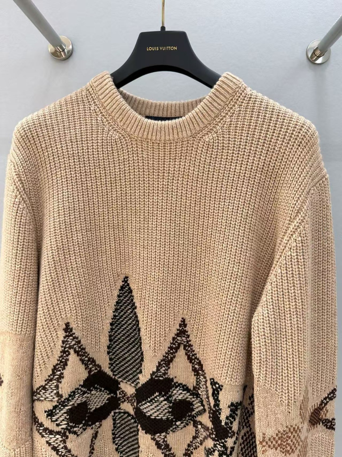 這款厚實的圓領針織衫採用100%頂級細支美利奴羊毛製成 🧶它飾有標誌性的Monogram花卉圖案和層疊的雪花印花❄️並以對比鮮明的紋理縫線點綴 🌸這款單品為您的冬季衣櫥增添優雅氣息,其現代感十足的標誌性設計可混搭各種穿搭風格💖