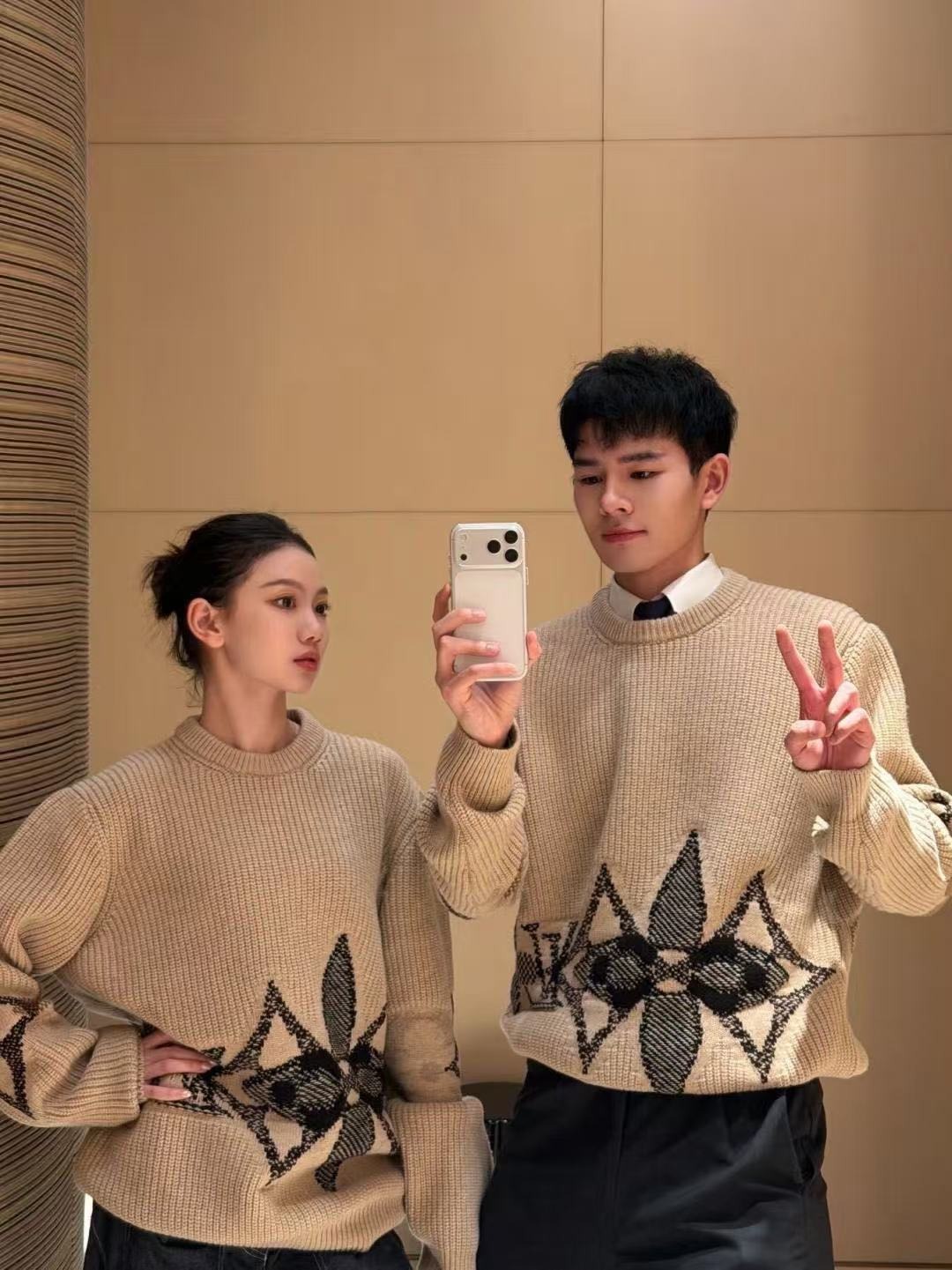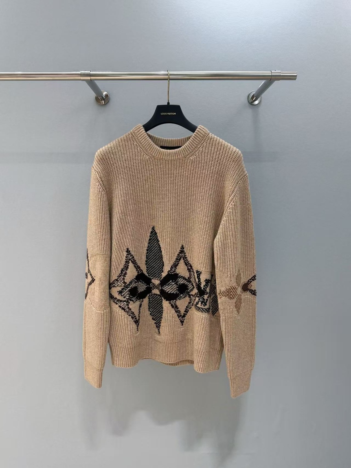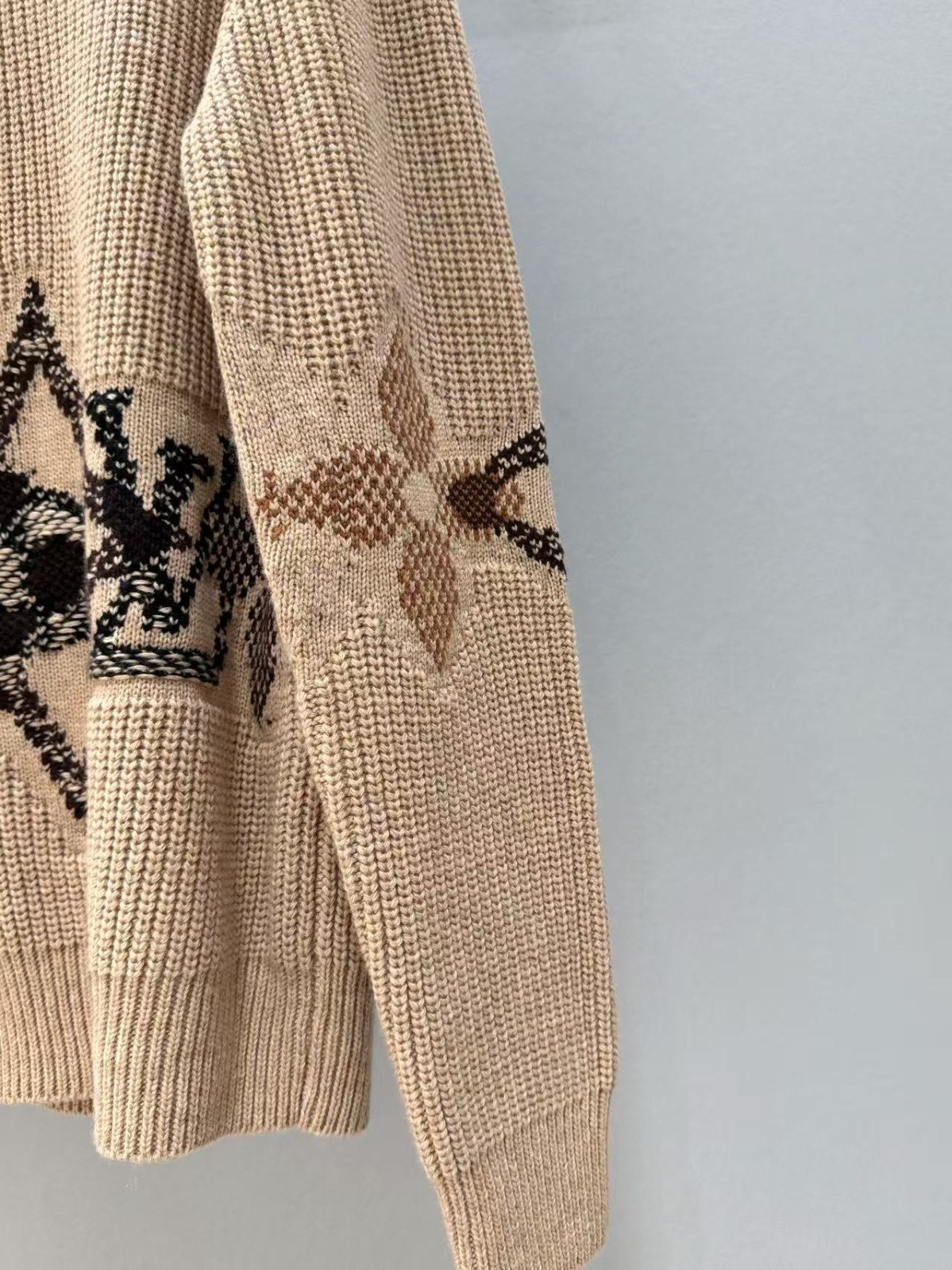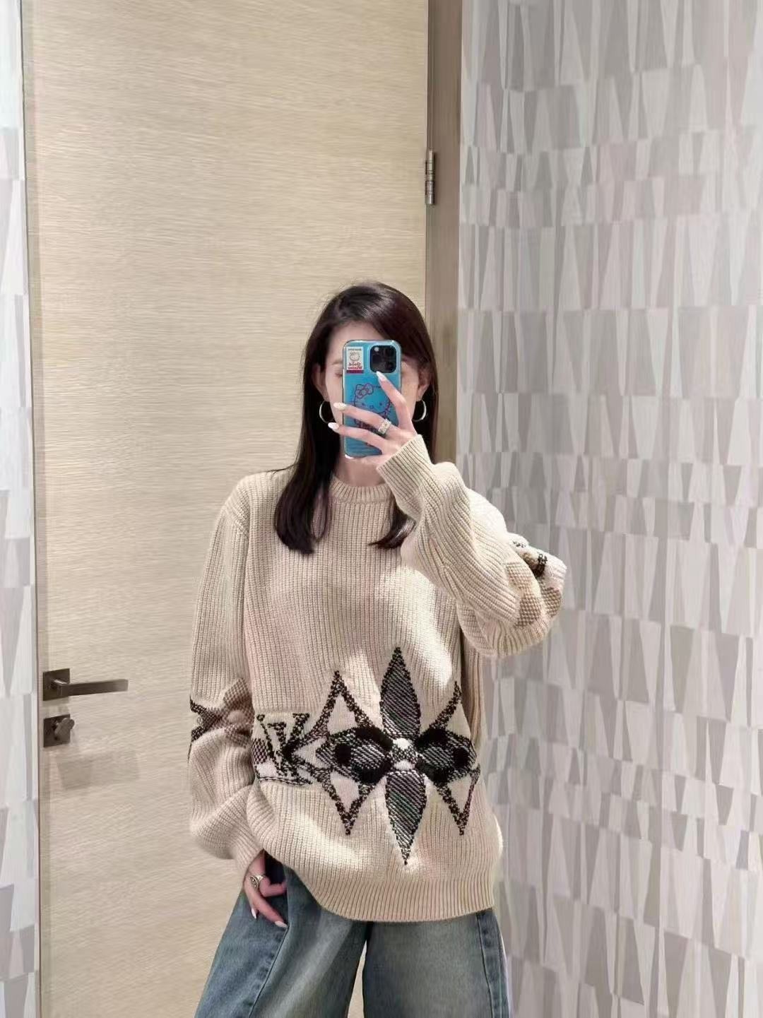 這款厚實的圓領針織衫採用100%頂級細支美利奴羊毛製成 🧶它飾有標誌性的Monogram花卉圖案和層疊的雪花印花❄️並以對比鮮明的紋理縫線點綴 🌸這款單品為您的冬季衣櫥增添優雅氣息,其現代感十足的標誌性設計可混搭各種穿搭風格💖