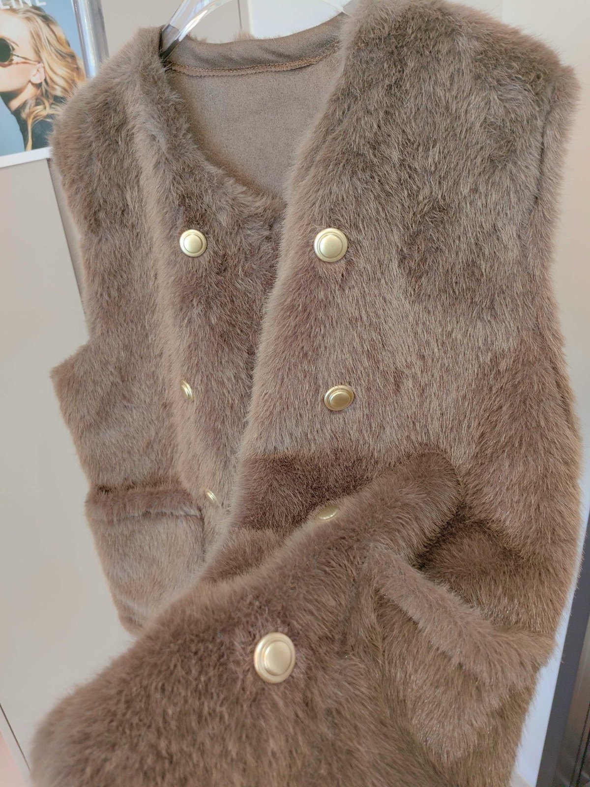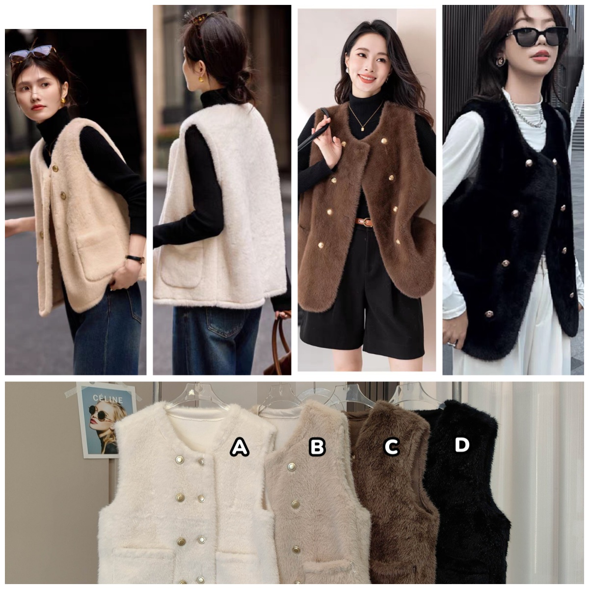 韓國🇰🇷 東大門人氣款🔥輕奢感雙排扣仿皮草背心 環保♻️皮草