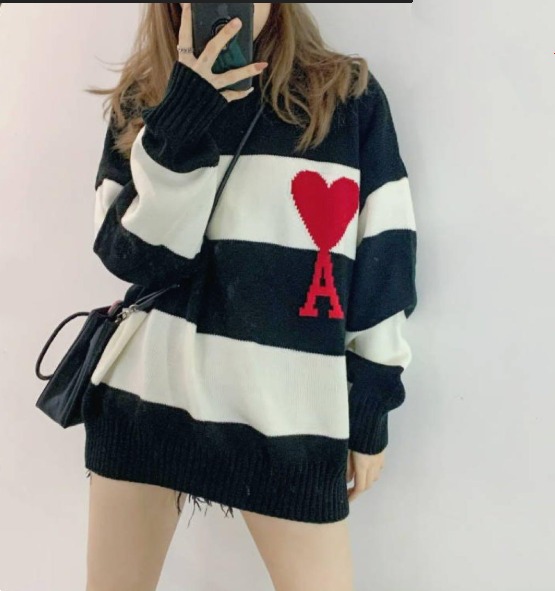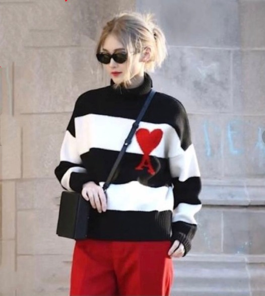 這款飾有 Ami 標誌的針織毛衣展現了品牌對現代風格的簡約詮釋。胸前飾有品牌標誌性的紅色嵌花針織“ami de c'ur”(心之友)圖案,低調卻不失個性,一眼就能被懂行的人認出