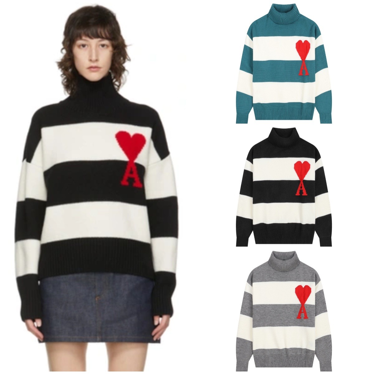 AMI Paris 條紋拼接高領羊毛冷衫