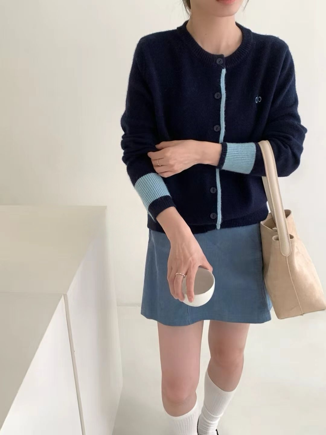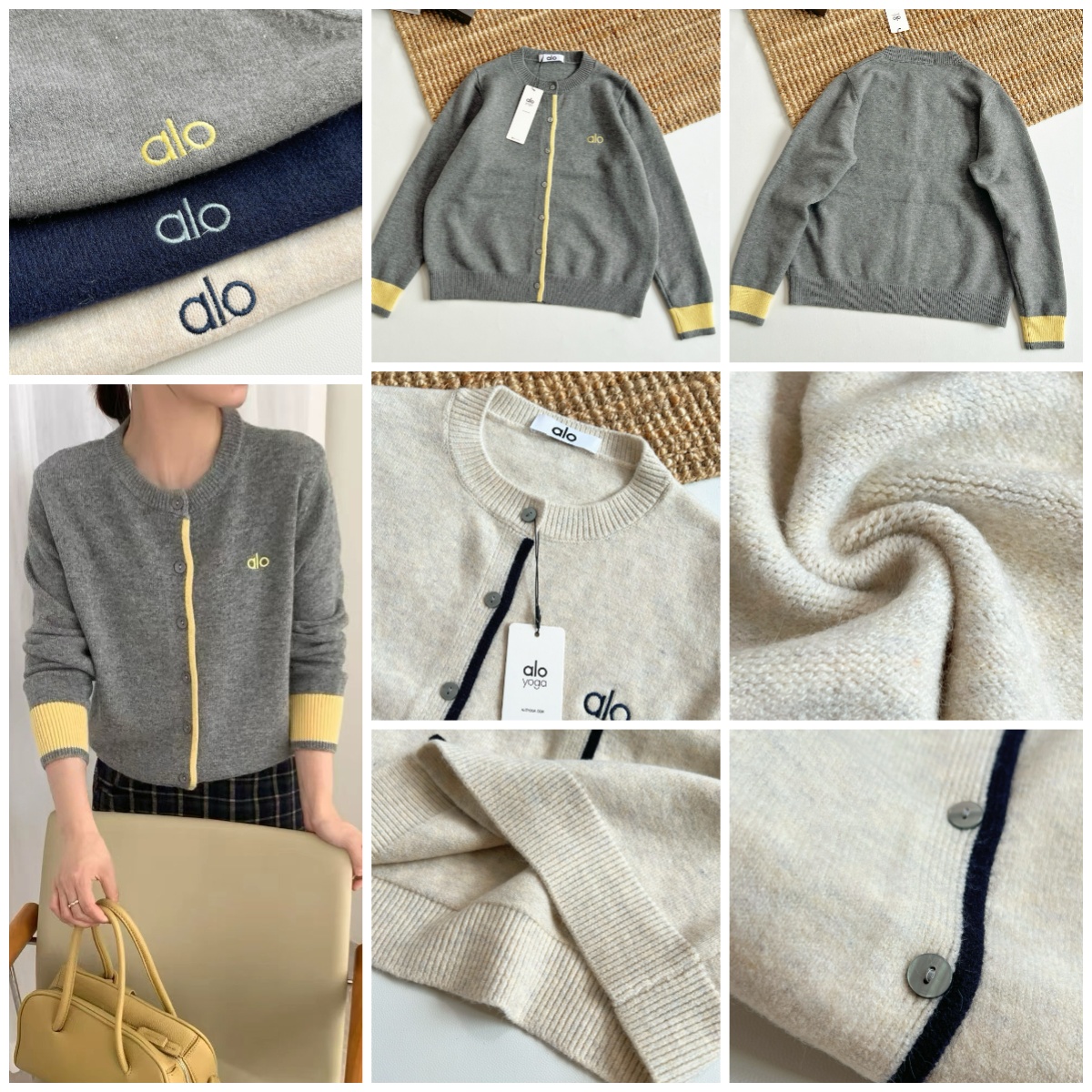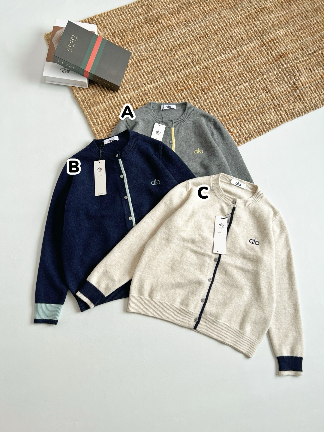 Alo 拼色刺繡圓領鈕扣開襟冷衫