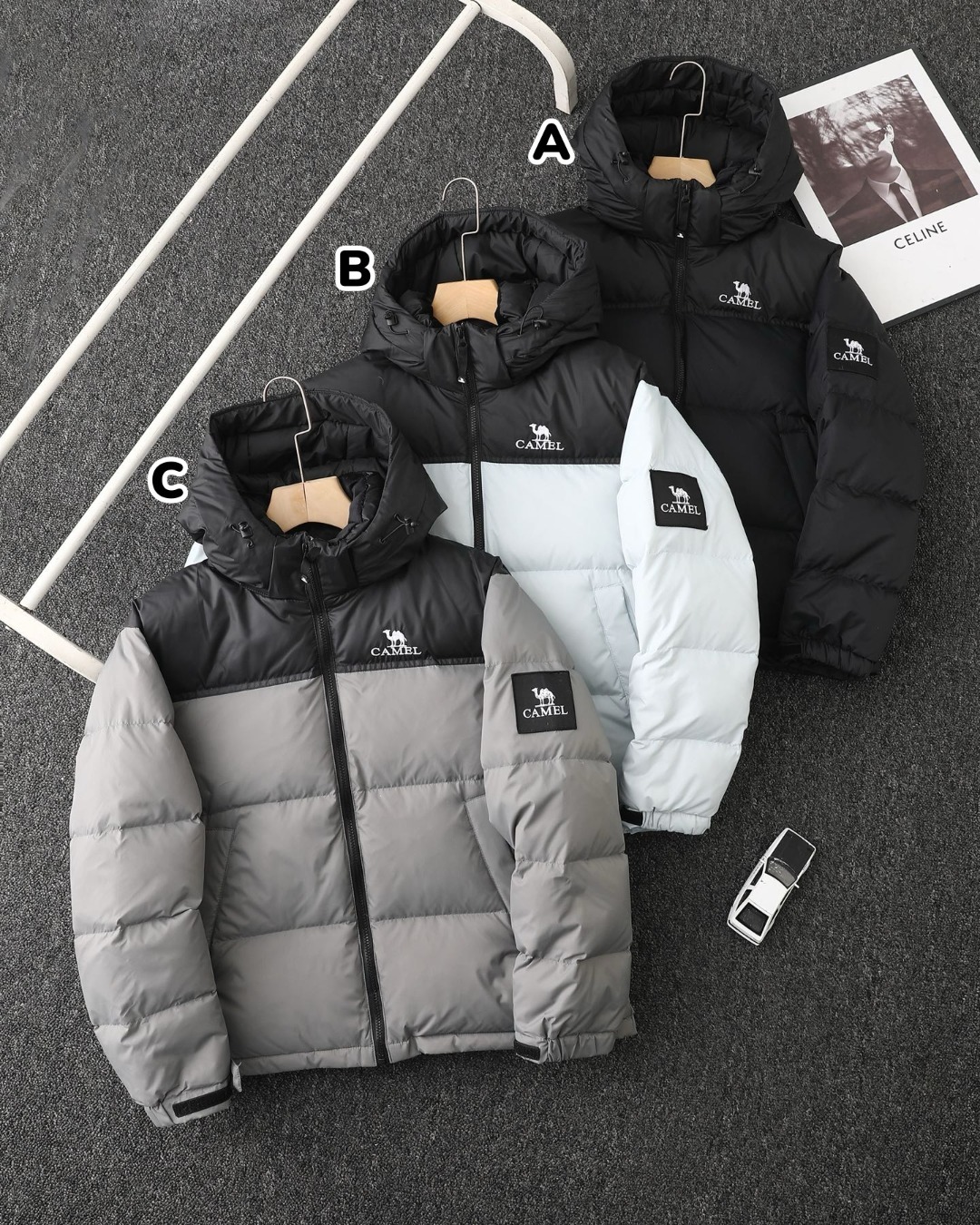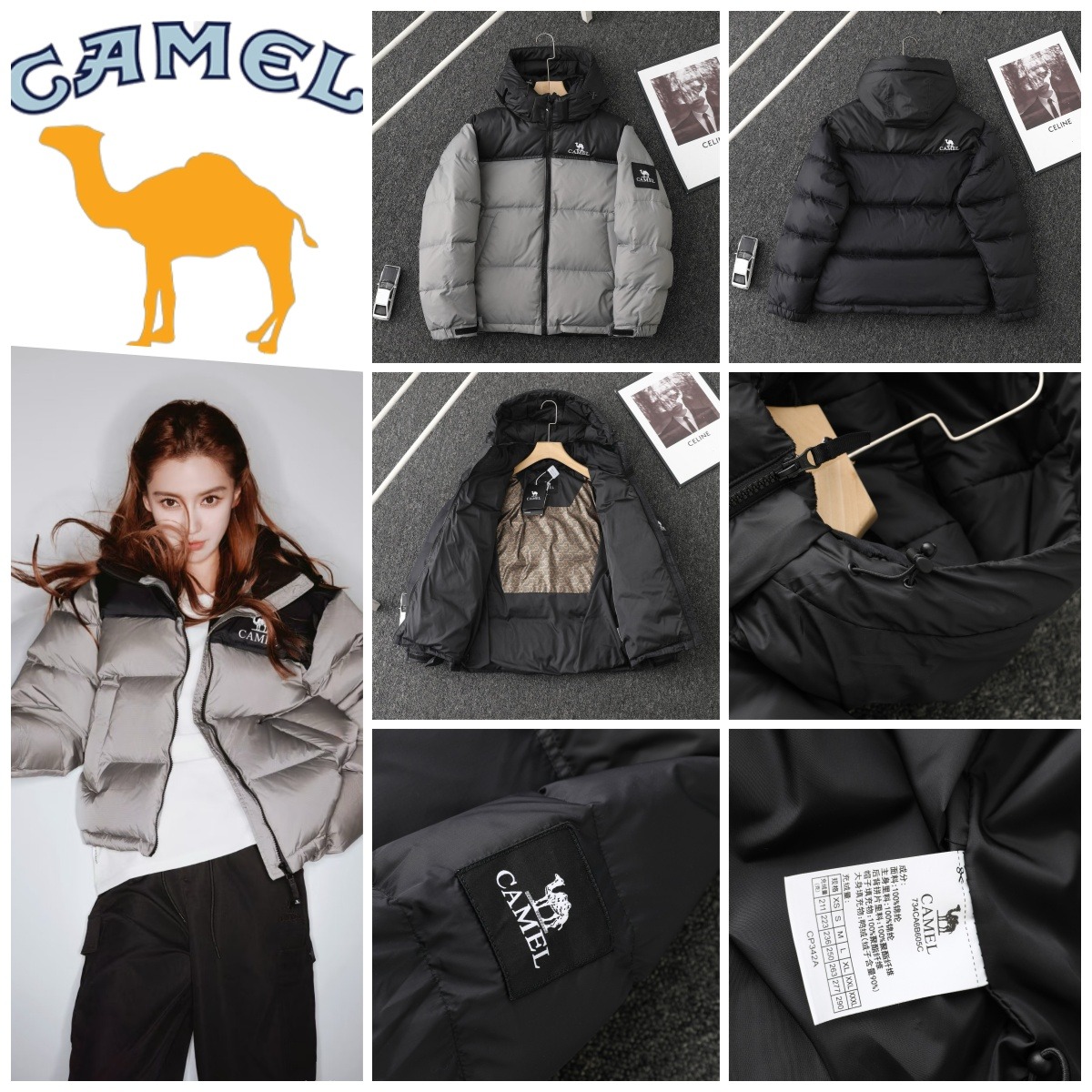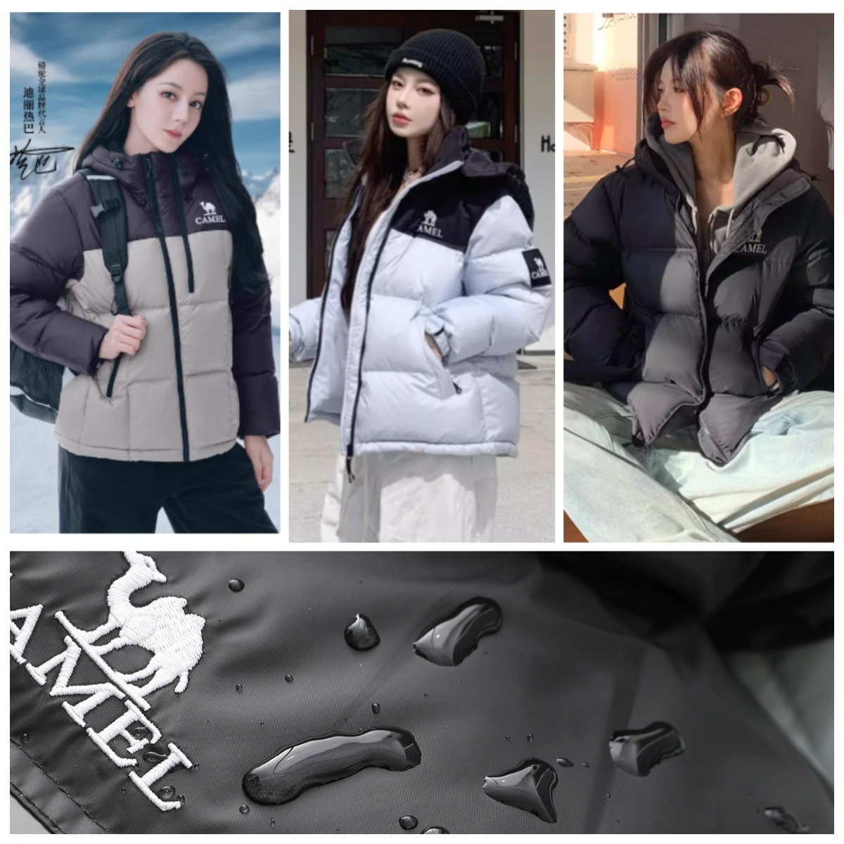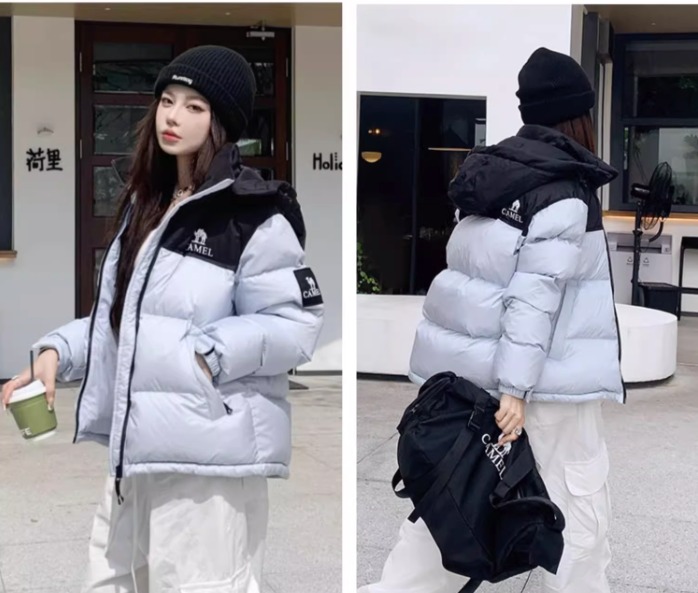 CAMEL 拼色防寒連帽羽絨服