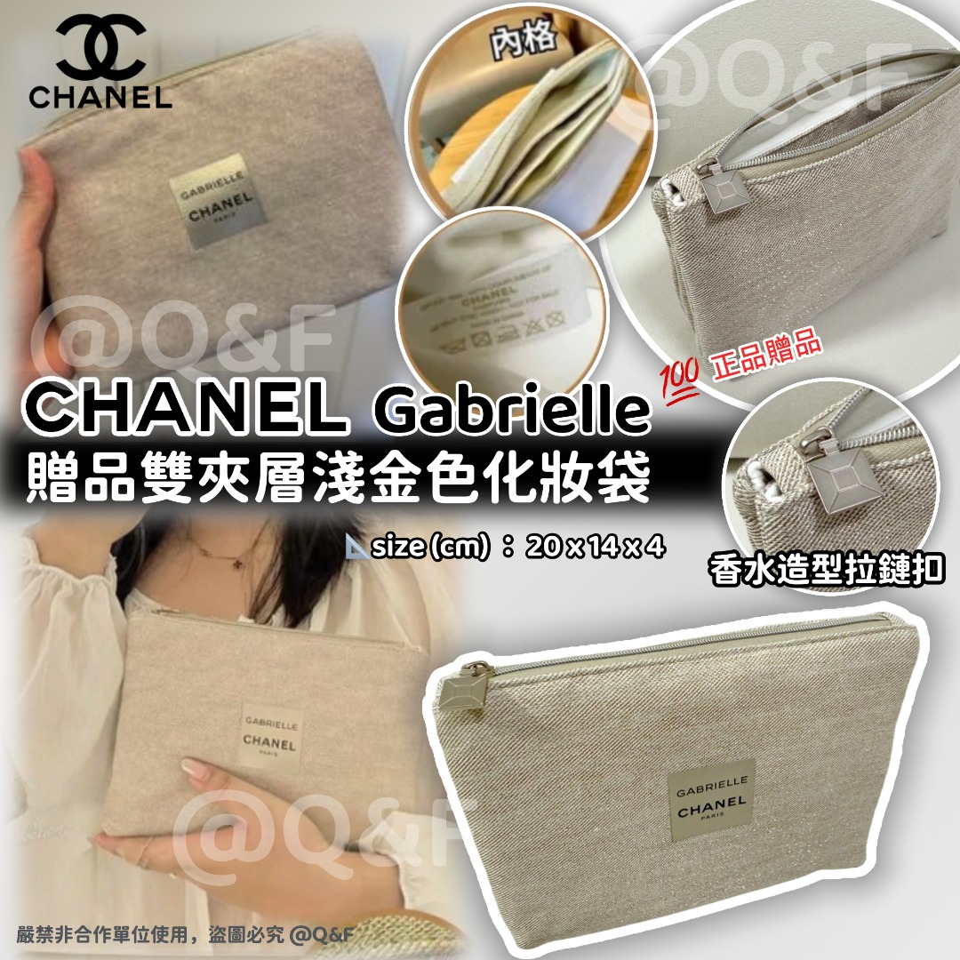Chanel Gabrielle 贈品雙夾層淺金色化妝袋