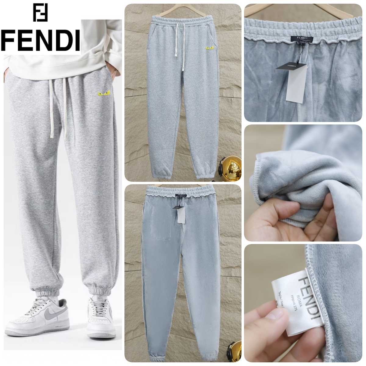 FENDI 貓眼加絨休閒長褲