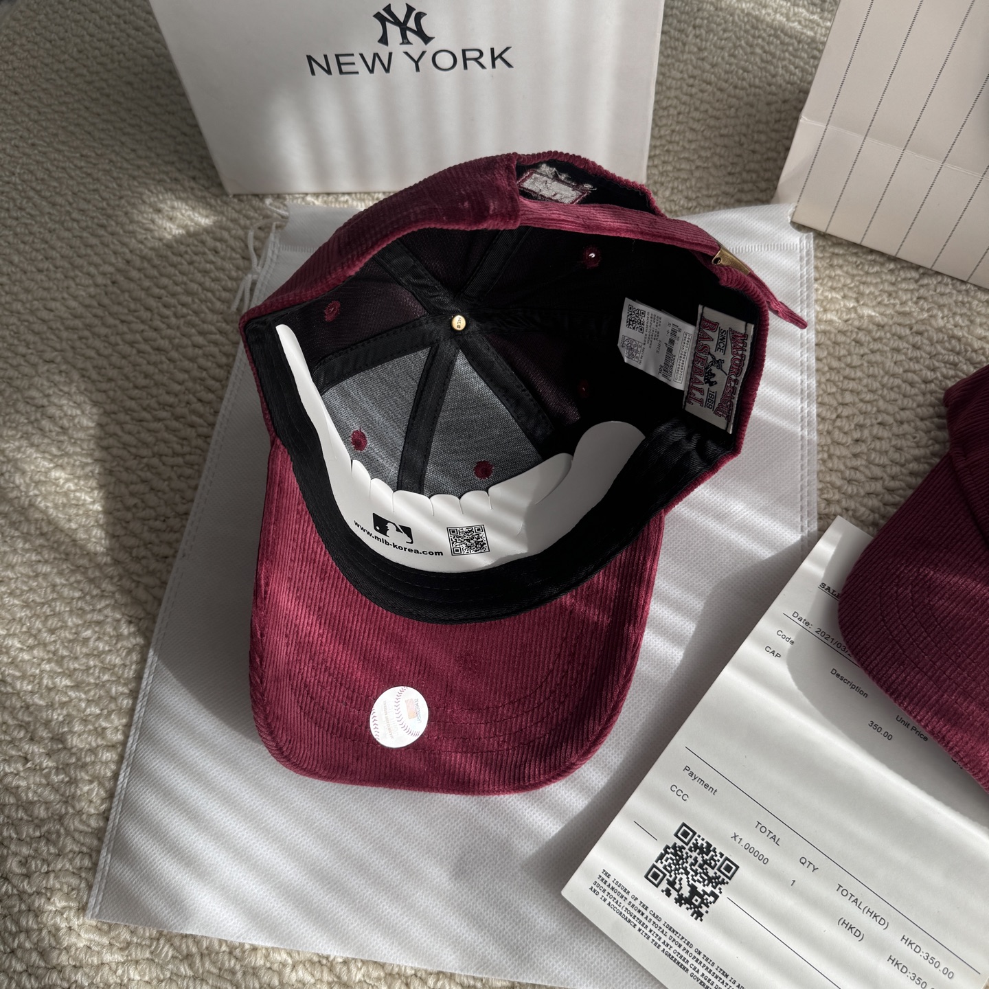 MLB 燈芯絨刺繡字母棒球帽