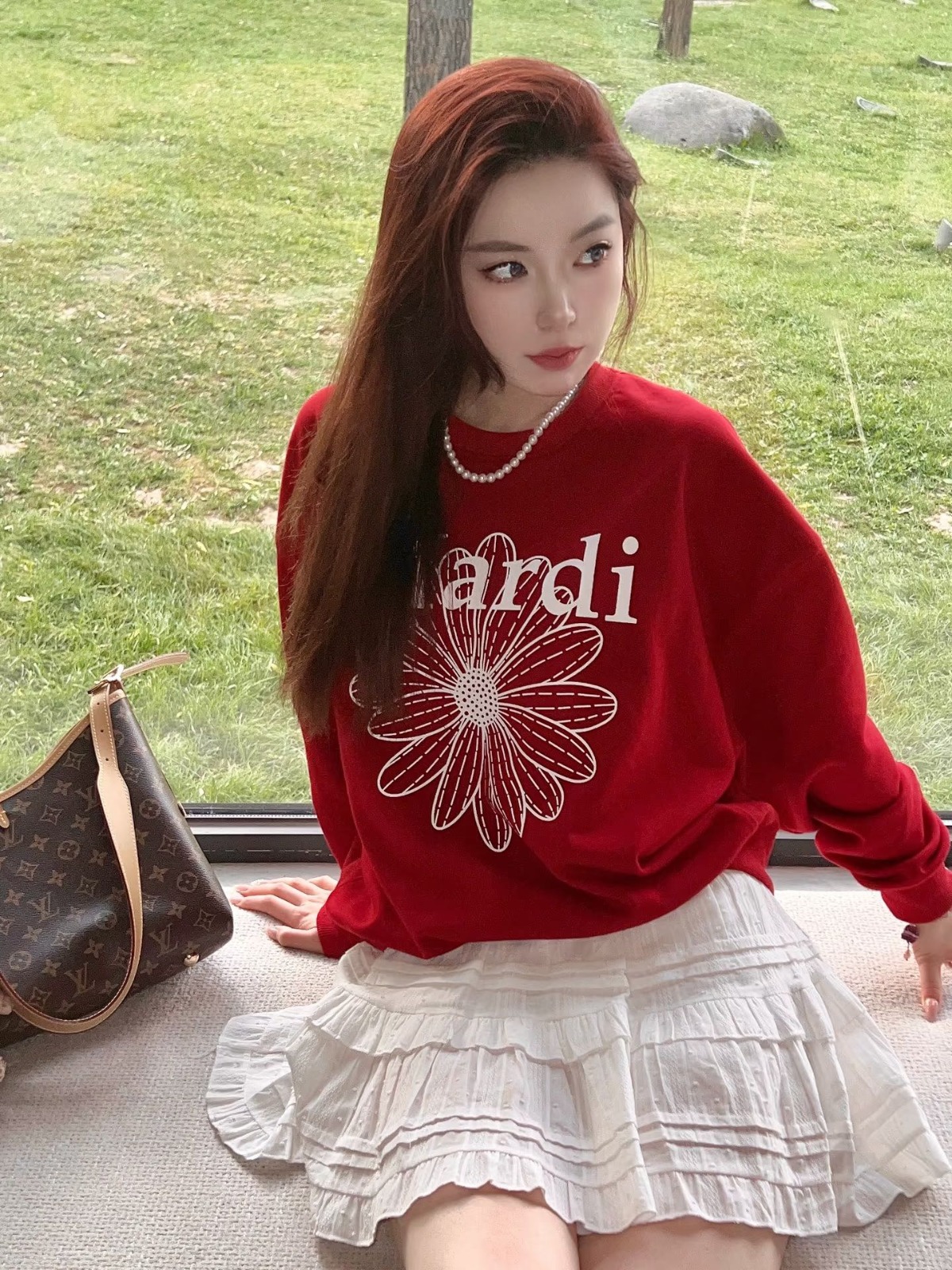 Mardi Mercredi 雛菊印花加絨圓領衛衣🔥 紅色🌹