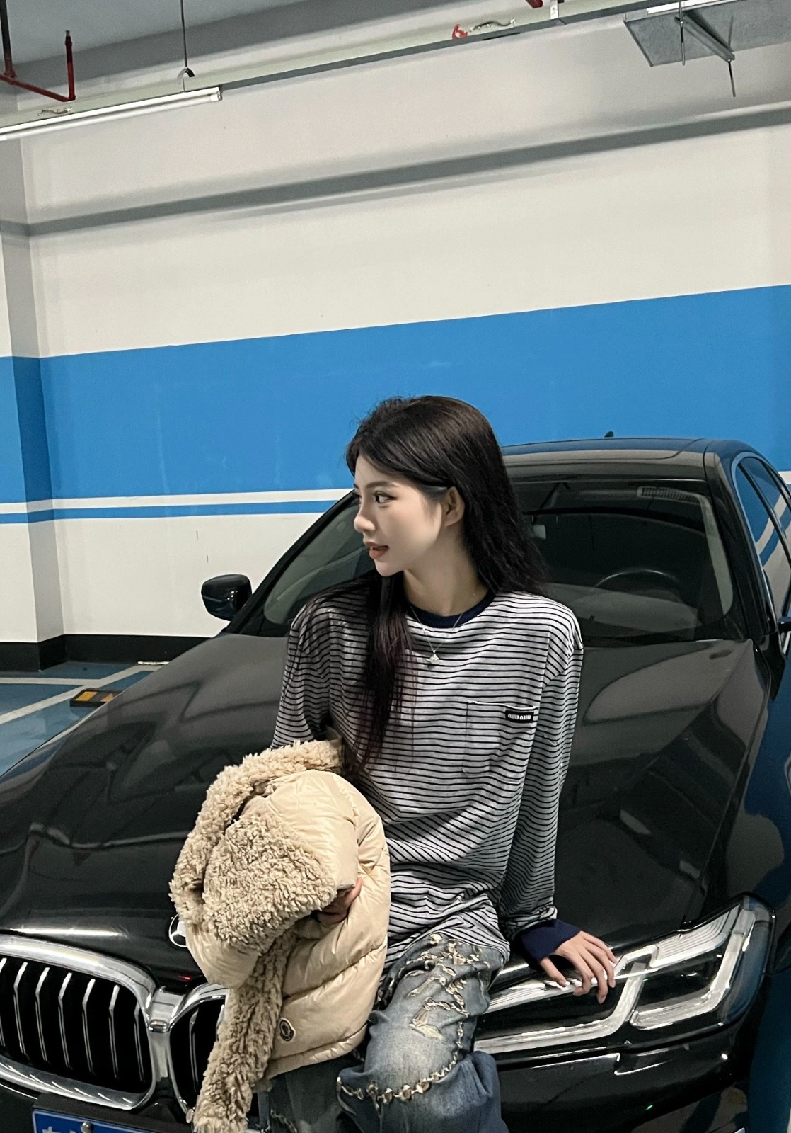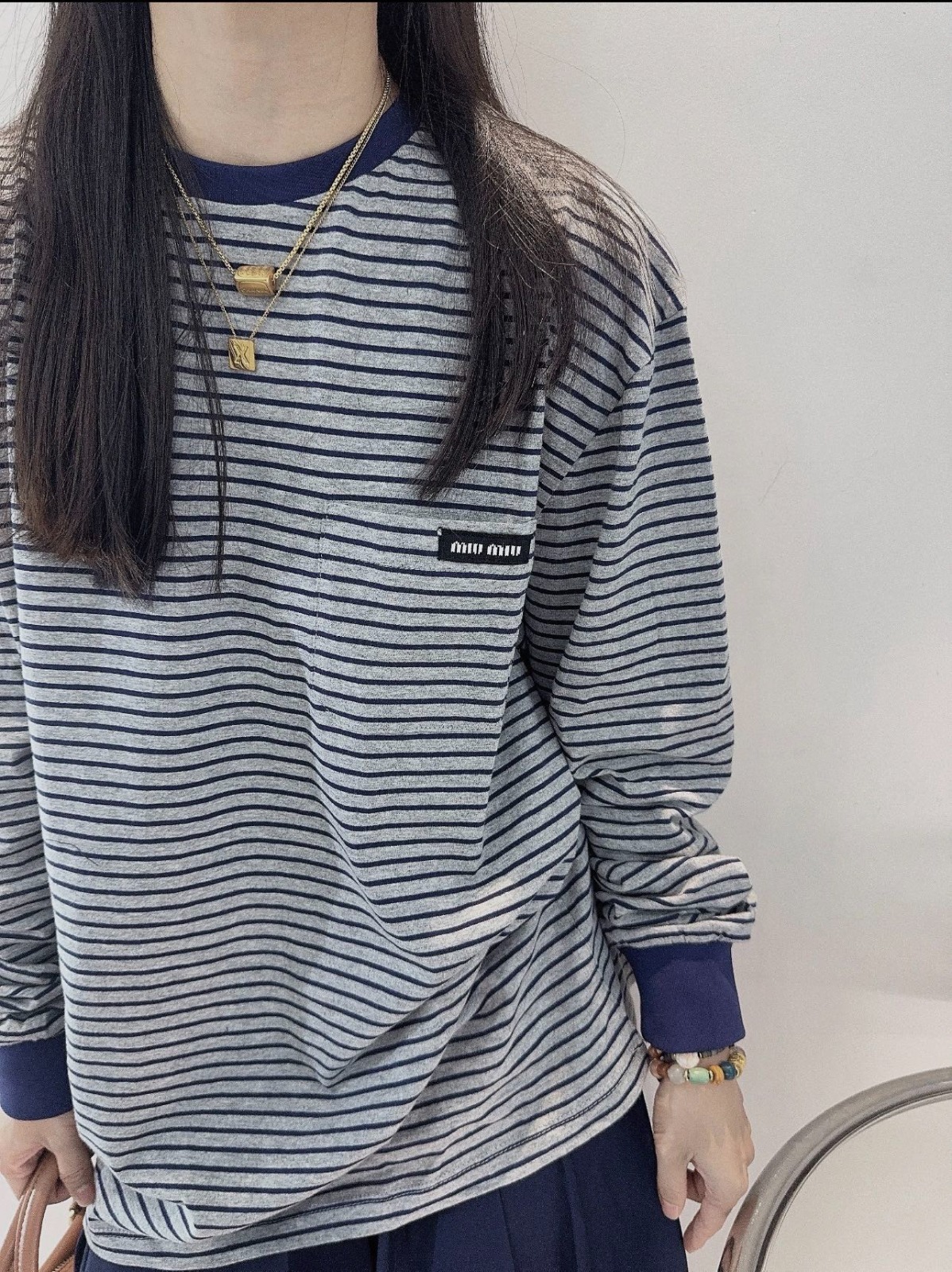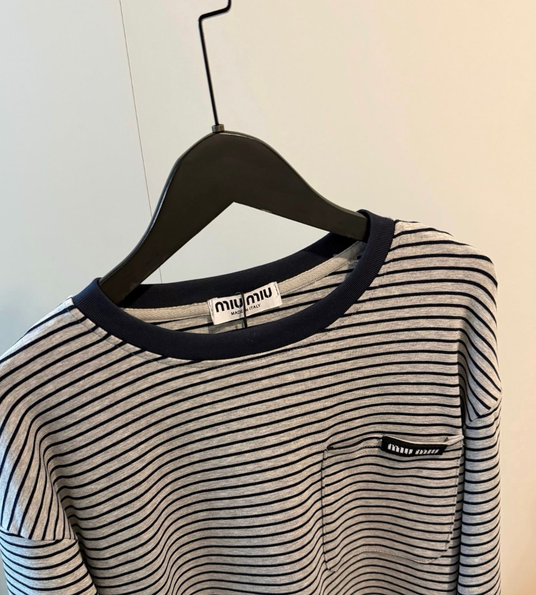 Miu Miu 新款口袋條紋長袖Tee
