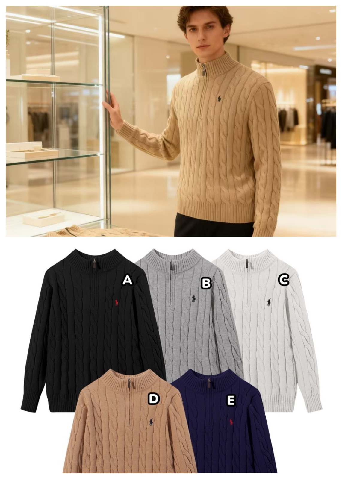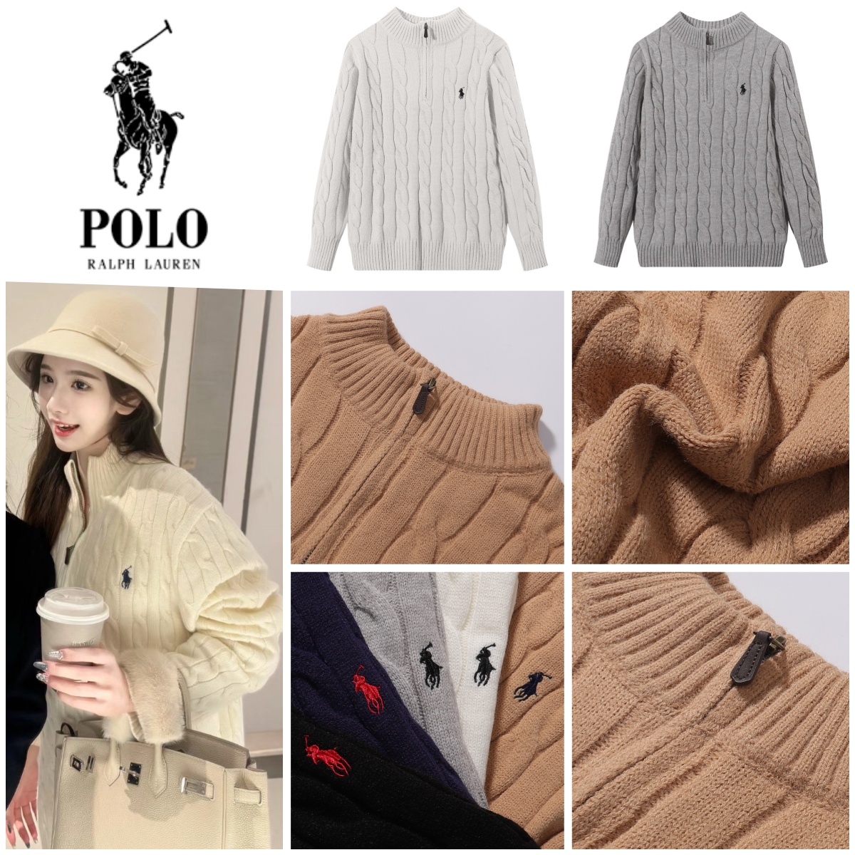 Polo Ralph Lauren 立領半拉鍊麻花針織冷衫 原標可掃碼