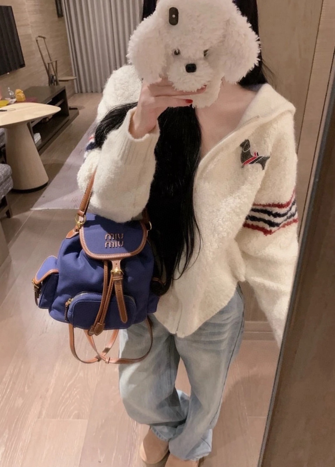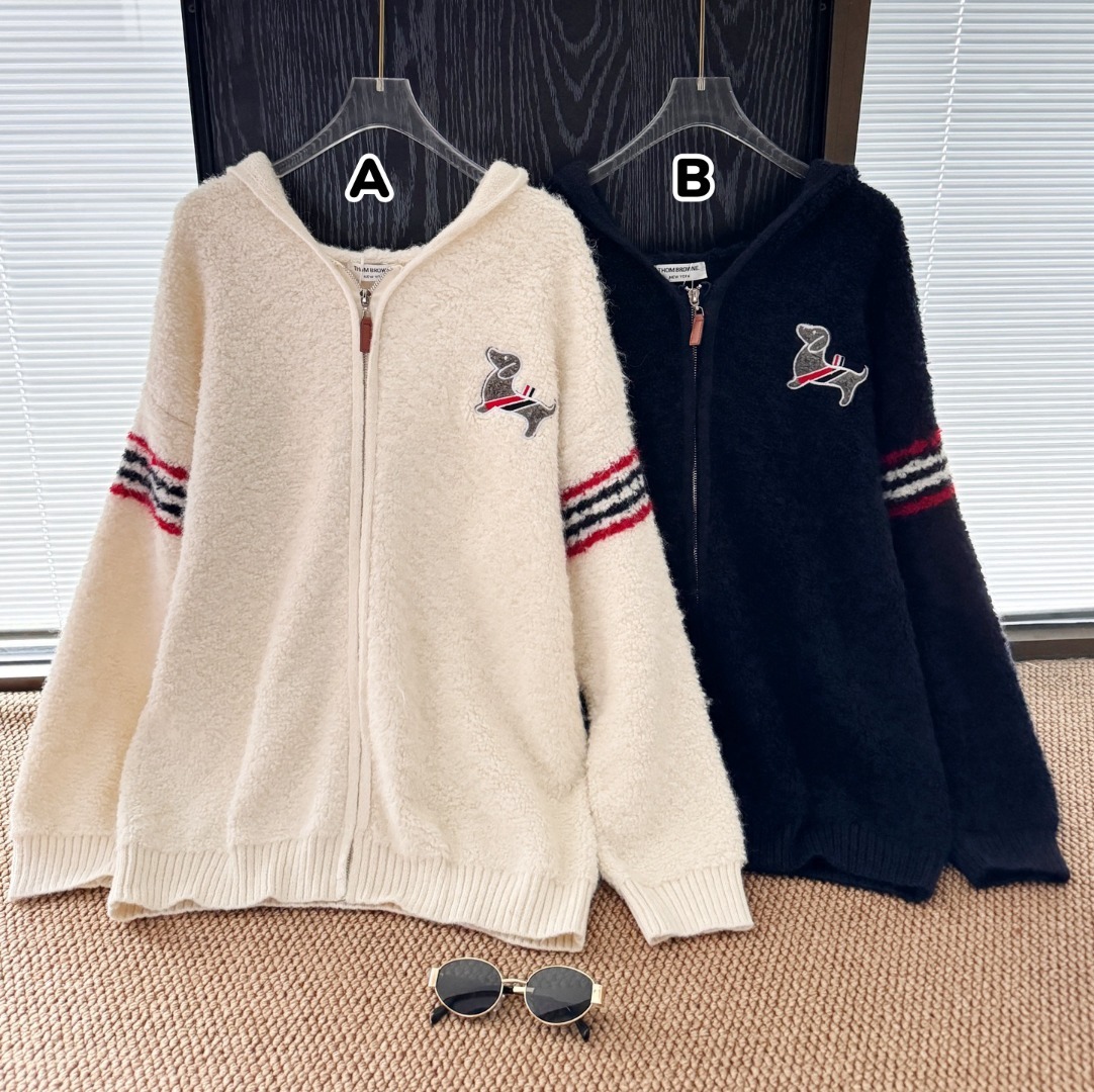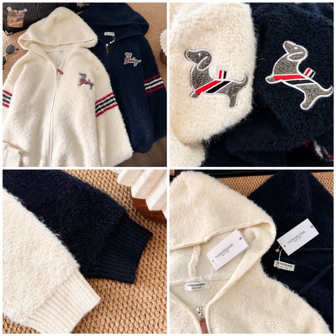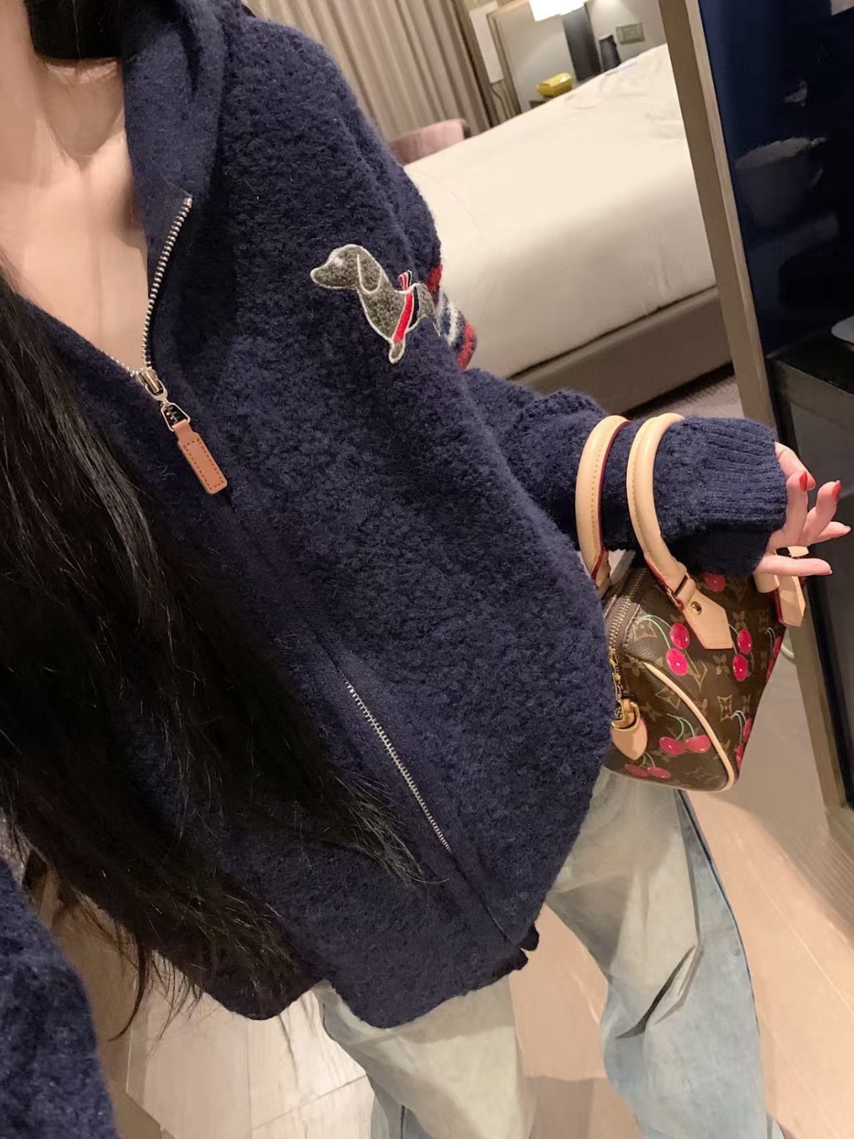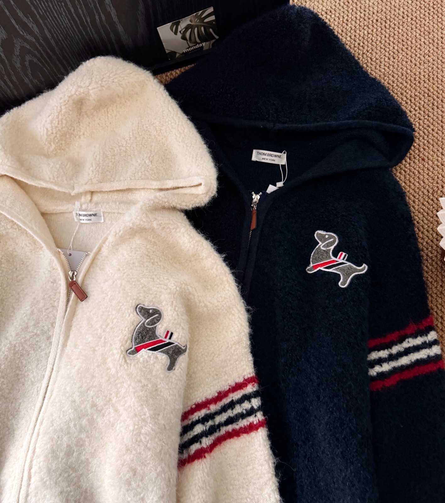 Thom Browne 圈圈毛小狗刺繡連帽開襟衫